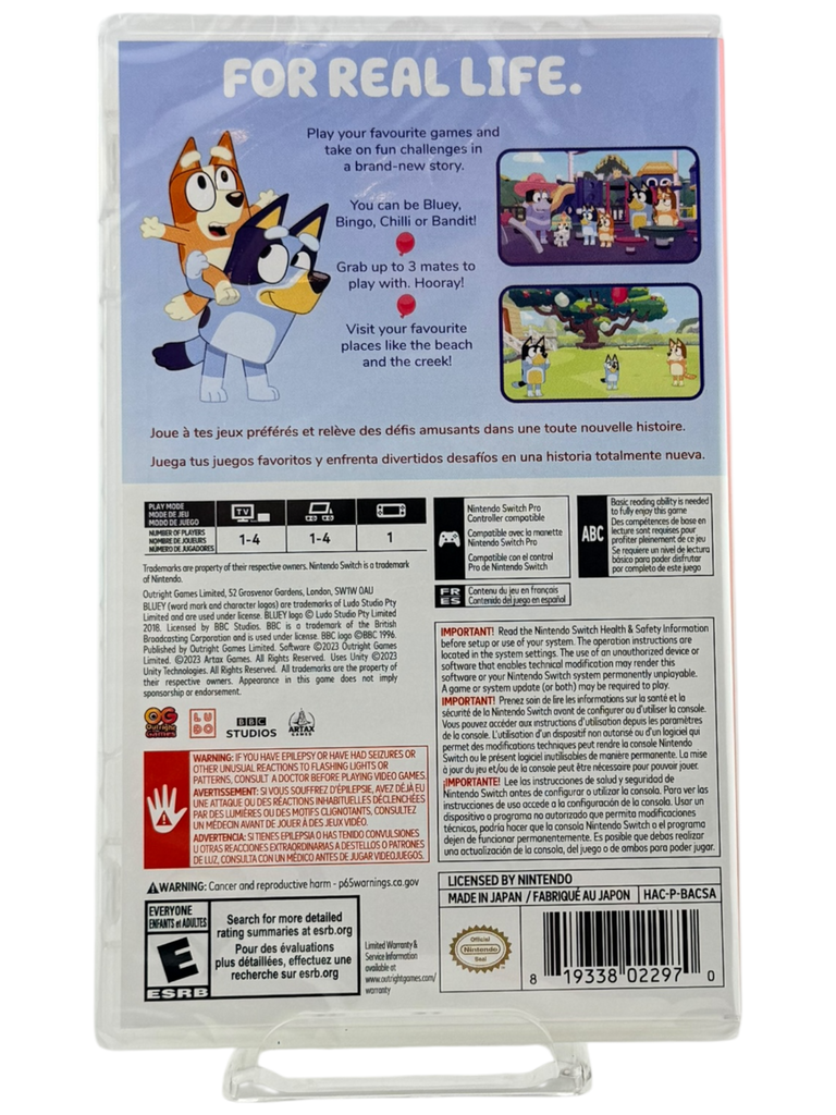 Jump into family-friendly fun with Bluey: The Videogame for Nintendo Switch. Based on the hit animated series, this charming adventure lets players explore colorful locations, play mini-games, and enjoy interactive stories alongside Bluey, Bingo, Bandit, and Chilli.