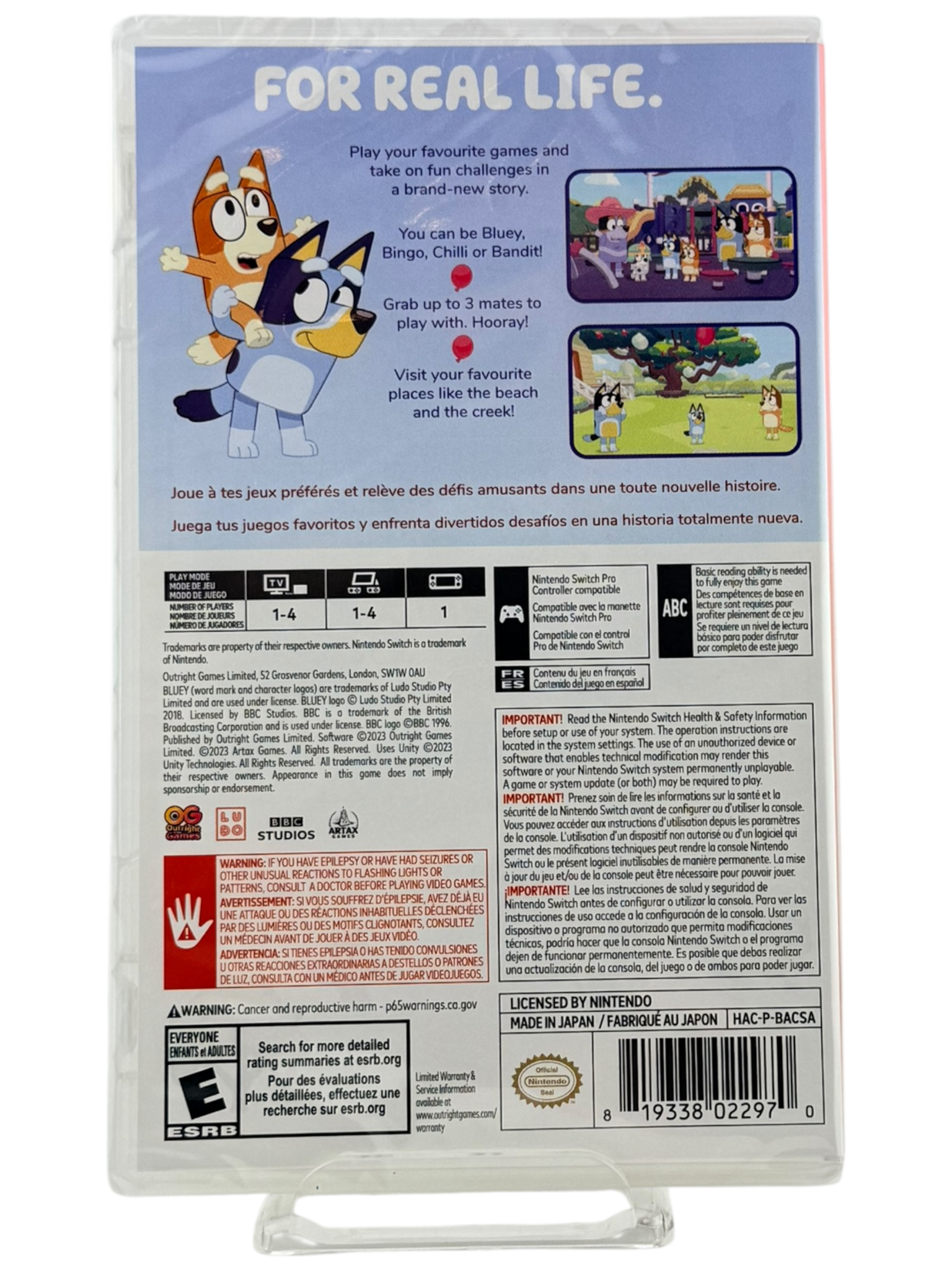 New and factory sealed. This Nintendo Switch copy of Bluey: The Videogame is brand new with the original shrink wrap intact and unbroken. The case, cover art, and seal are in excellent retail condition with no signs of prior opening or use. All original contents are included as issued by the publisher. Please review photos for exact cosmetic condition.