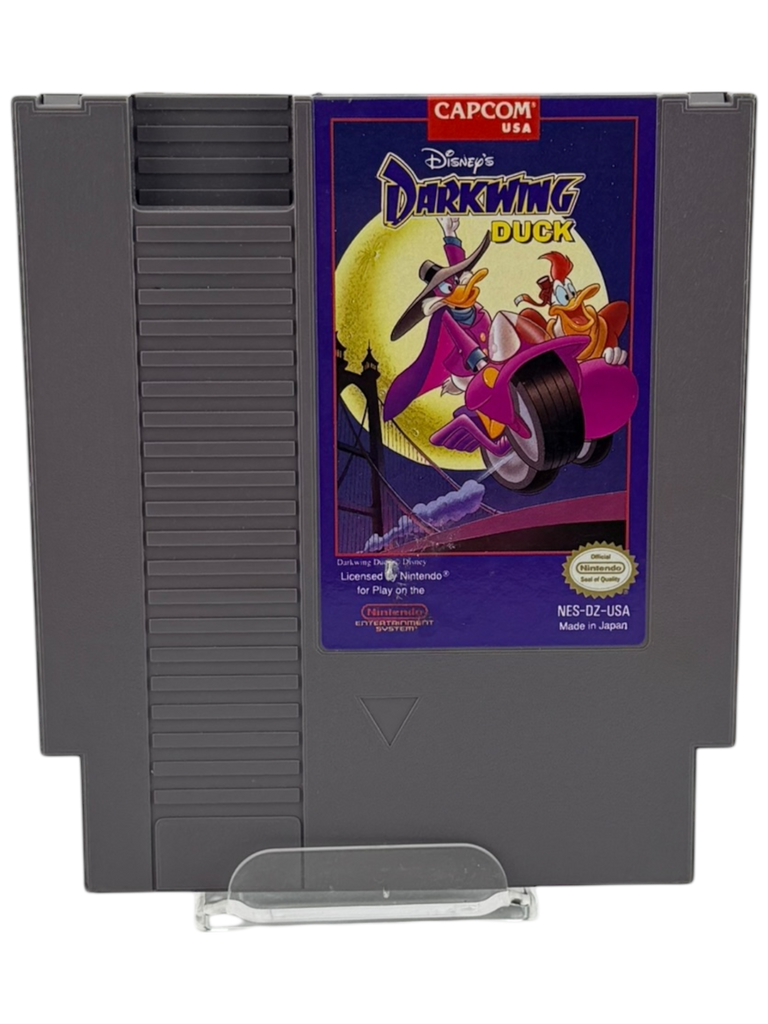 Players take control of Darkwing Duck as he battles iconic villains across a variety of themed stages, using his gas gun, environmental interactions, and precision platforming skills to restore justice—preferably while striking a dramatic pose. With its polished mechanics, charming presentation, and Capcom’s signature difficulty balance, Darkwing Duck has earned its place as one of the most sought-after licensed titles on the NES.