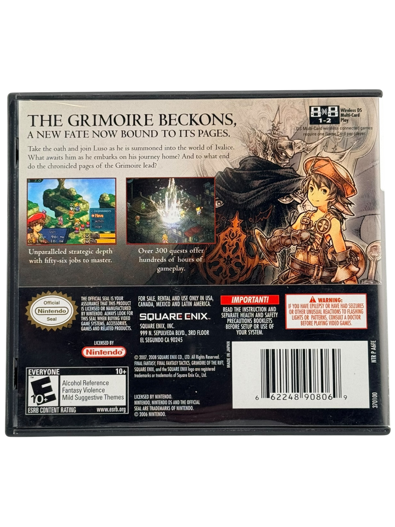 This copy of Final Fantasy Tactics A2: Grimoire of the Rift for the Nintendo DS is complete in box (CIB). The listing includes the original game cartridge, original manual, and the original Nintendo DS case with cover artwork.