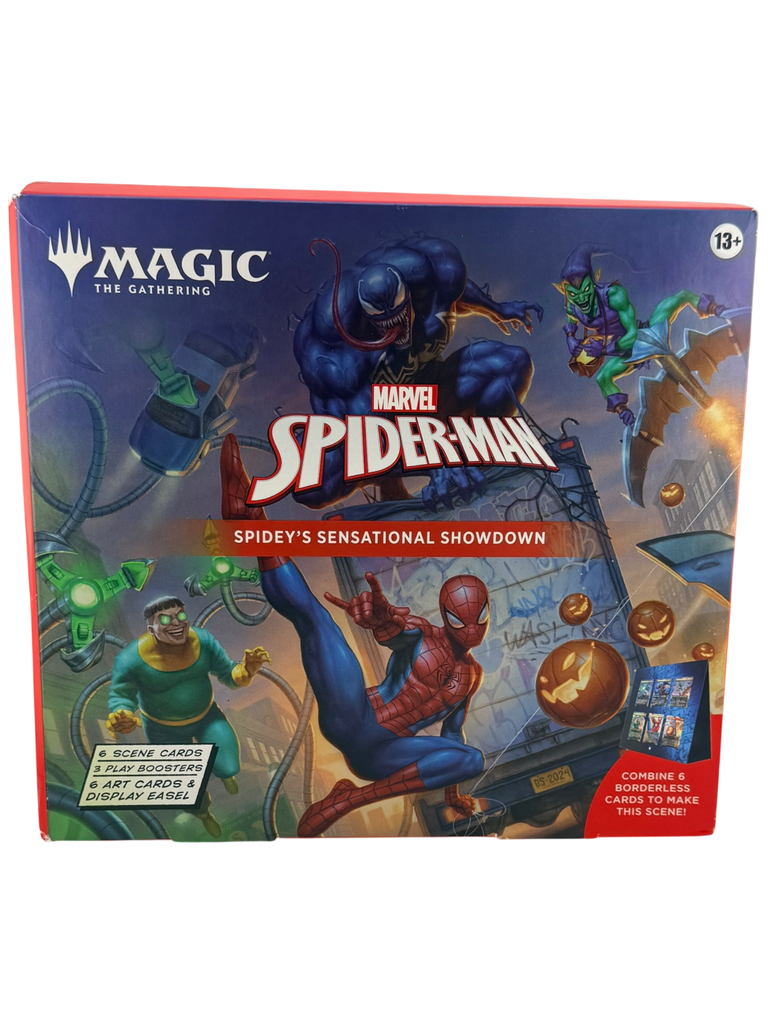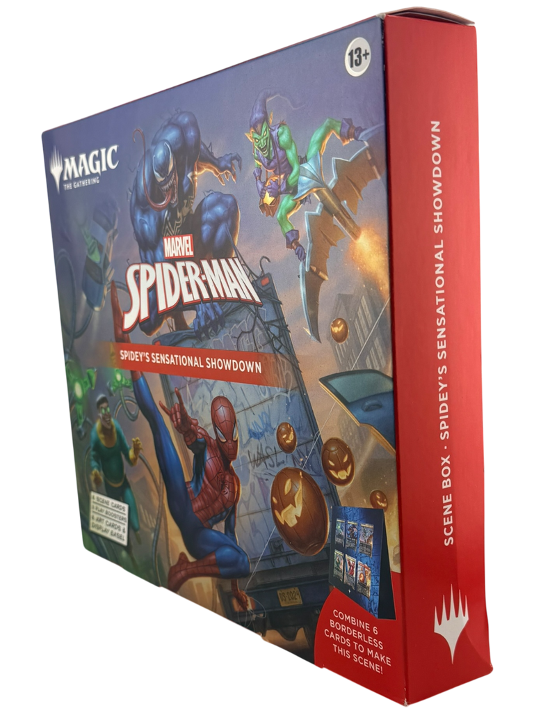 The Marvel’s Spider-Man Scene Box is a special collectible release that combines the thrill of web-slinging heroics with the depth and strategy of Magic: The Gathering. Inside, you’ll find exclusive themed cards, accessories, and presentation pieces that bring Marvel’s iconic hero to life in MTG form. This set is designed for both dedicated fans of Spider-Man and serious Magic players who enjoy unique, crossover products that blend fandom and gameplay.