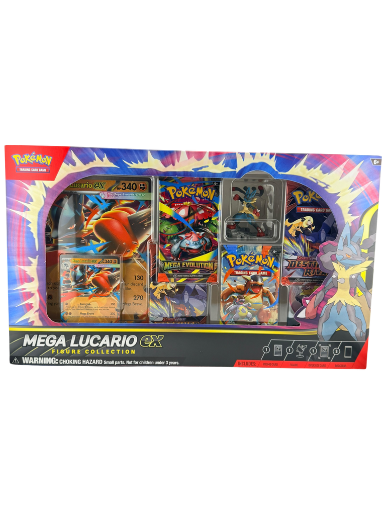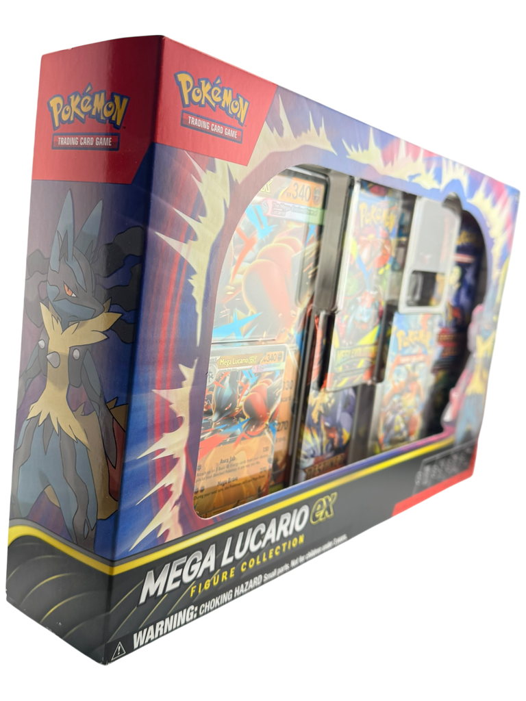 The Mega Lucario ex Premium Figure Collection is a high-end sealed Pokémon TCG product featuring one of the most popular and collectible Pokémon in the entire franchise. Premium Figure Collections are especially desirable because they combine booster packs with a display-worthy figure, making them feel like a true collector centerpiece rather than a standard pack product.