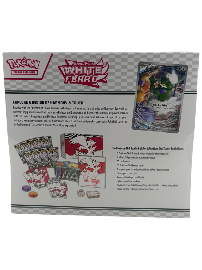 The SV: White Flare Elite Trainer Box is an excellent sealed Pokémon TCG product for collectors, players, and anyone looking to open packs with a premium presentation. Elite Trainer Boxes are one of the most popular Pokémon releases because they combine booster packs with useful extras—making them perfect for building decks, organizing pulls, and enjoying the full opening experience in a collector-friendly format.