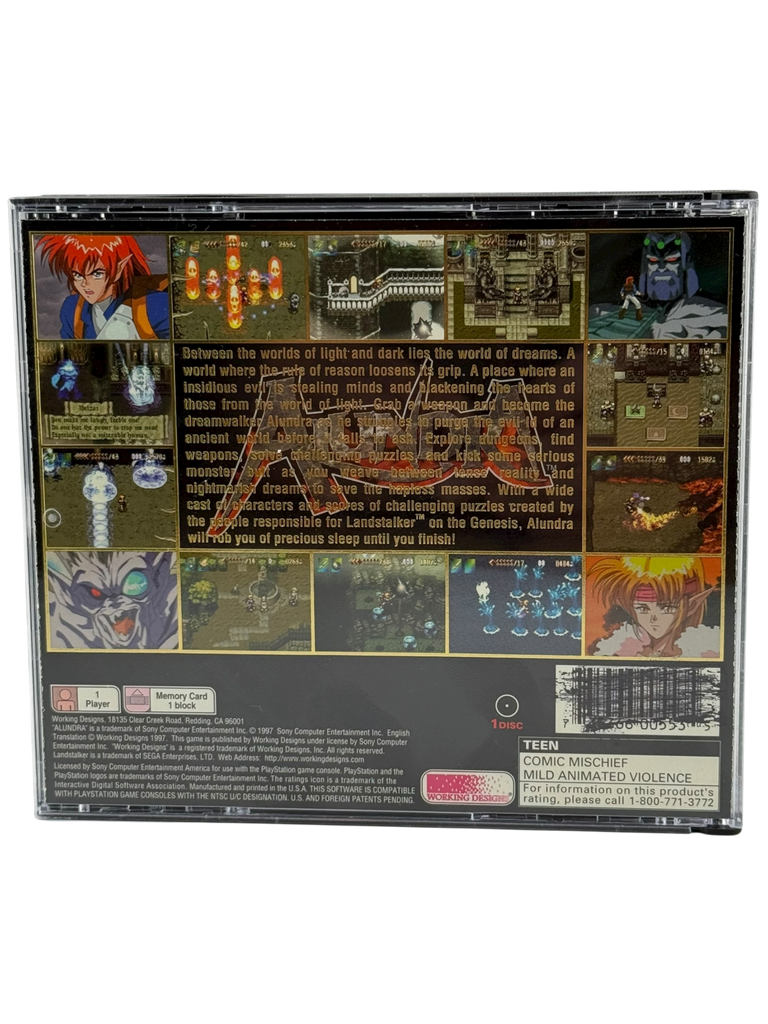 Alundra on PS1 is a classic action-adventure RPG renowned for its challenging puzzles, rich narrative, and atmospheric world. Players assume the role of Alundra, a young adventurer endowed with the power to enter and manipulate others’ dreams. Key features include:
