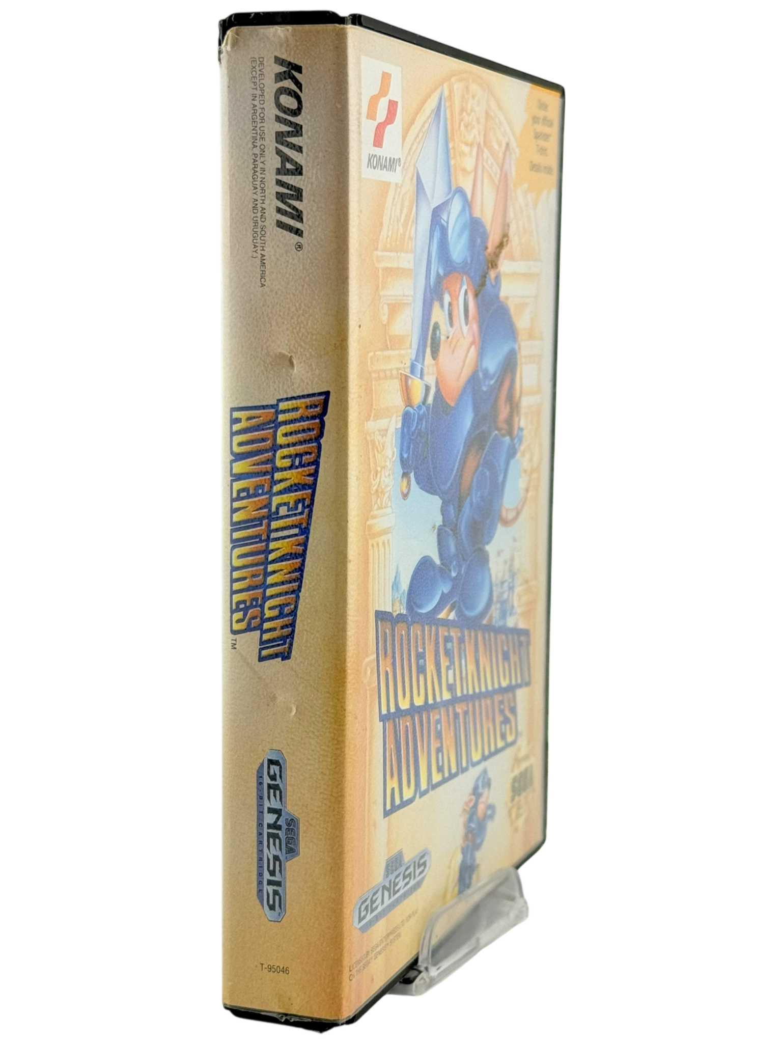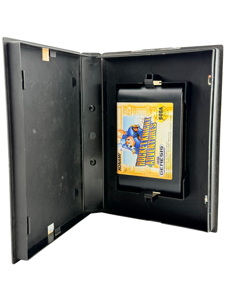 This is a game and box copy of Rocket Knight Adventures for Sega Genesis. The listing includes the original game cartridge and original box; the original manual is not included. The cartridge has been tested and functions properly. The box shows light to moderate shelf wear consistent with age and normal use, with no major damage unless otherwise noted. Please review the photos carefully for exact cosmetic condition and contents.