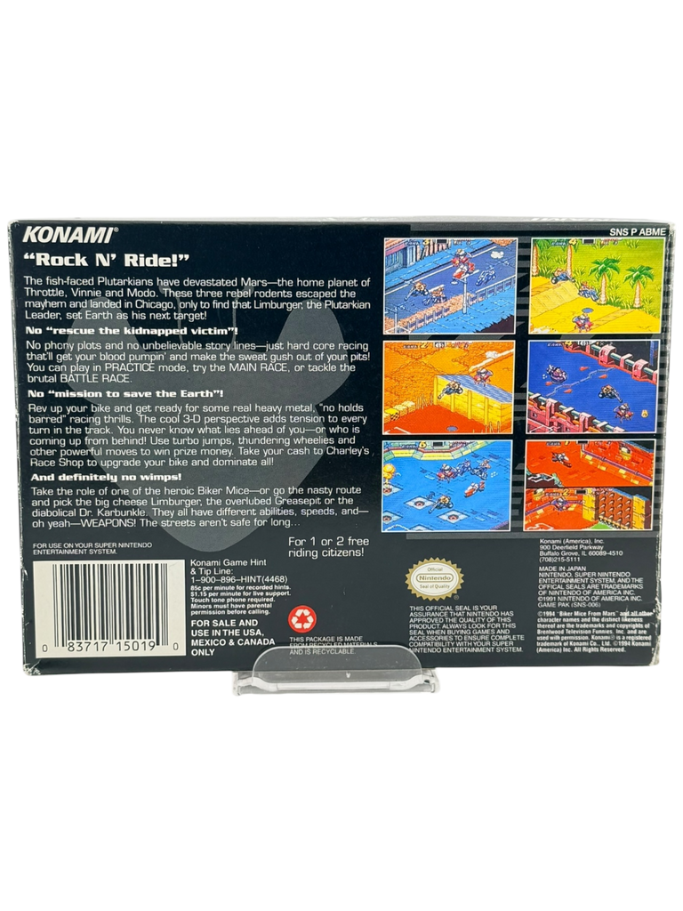 The game combines arcade-style racing with light combat mechanics, capturing the rebellious attitude and over-the-top personality that defined early ’90s cartoons. Bold visuals, character-driven gameplay, and a strong sense of speed make it a memorable licensed title from the SNES era.