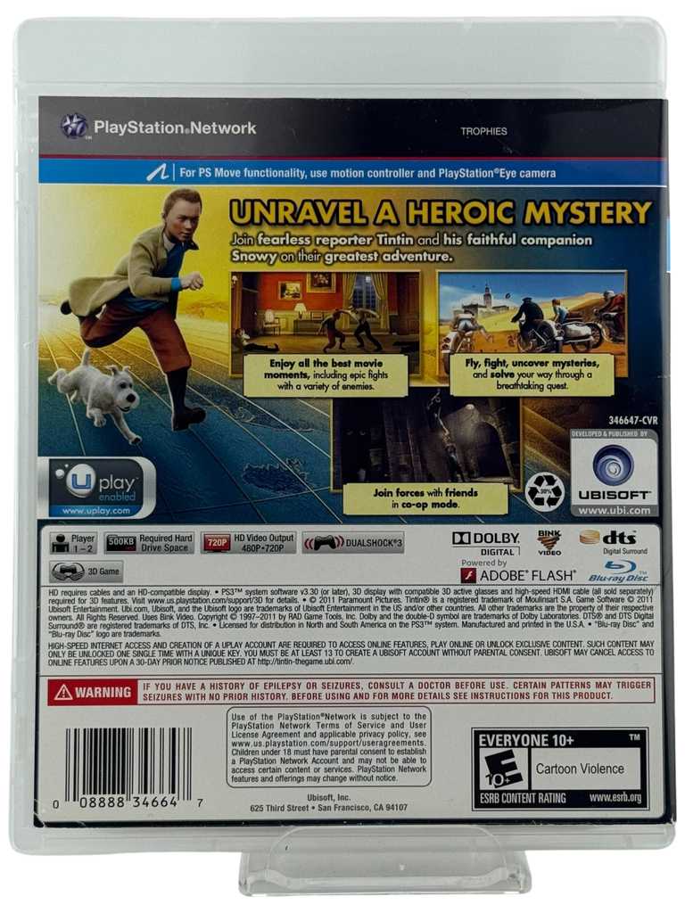 This is a complete in box PlayStation 3 game: Adventures of Tintin: The Game. The listing includes the original game disc, manual, and original case with cover art. All components are authentic and in very good condition, with only minor signs of use. The disc has been tested and plays flawlessly. Please refer to photos for full condition details.