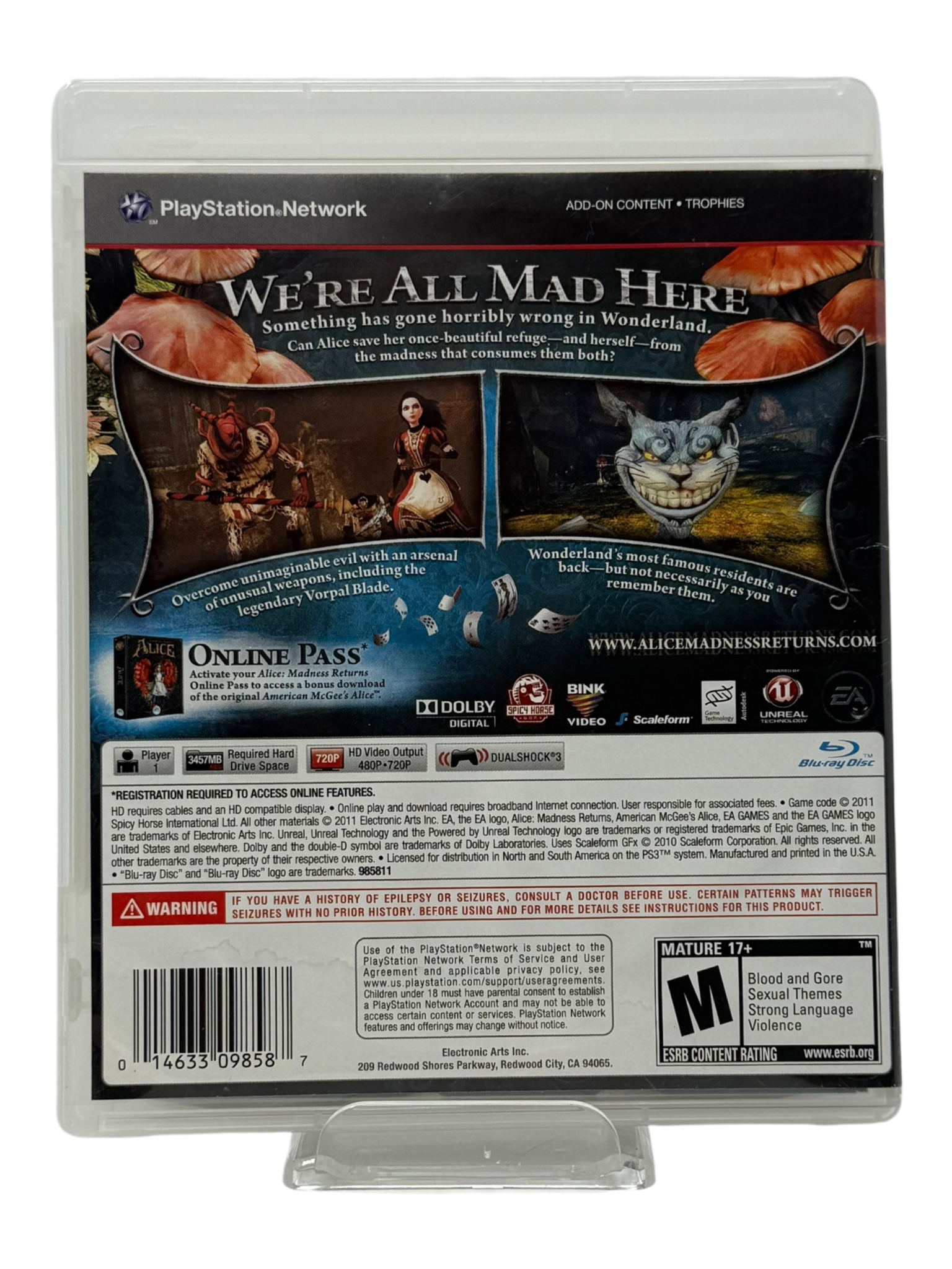 Enter the twisted and darkly enchanting world of Alice: Madness Returns for PlayStation 3, a psychological action-adventure that takes you into the disturbed mind of Alice as she navigates a nightmare version of Wonderland. After years of dealing with the trauma of her past, Alice must confront her inner demons and battle horrific versions of familiar characters in a visually stunning and emotionally intense adventure. Featuring a blend of platforming, combat, and puzzle-solving, Alice: Madness Returns offers a unique and haunting experience that stays with you long after you’ve finished playing.