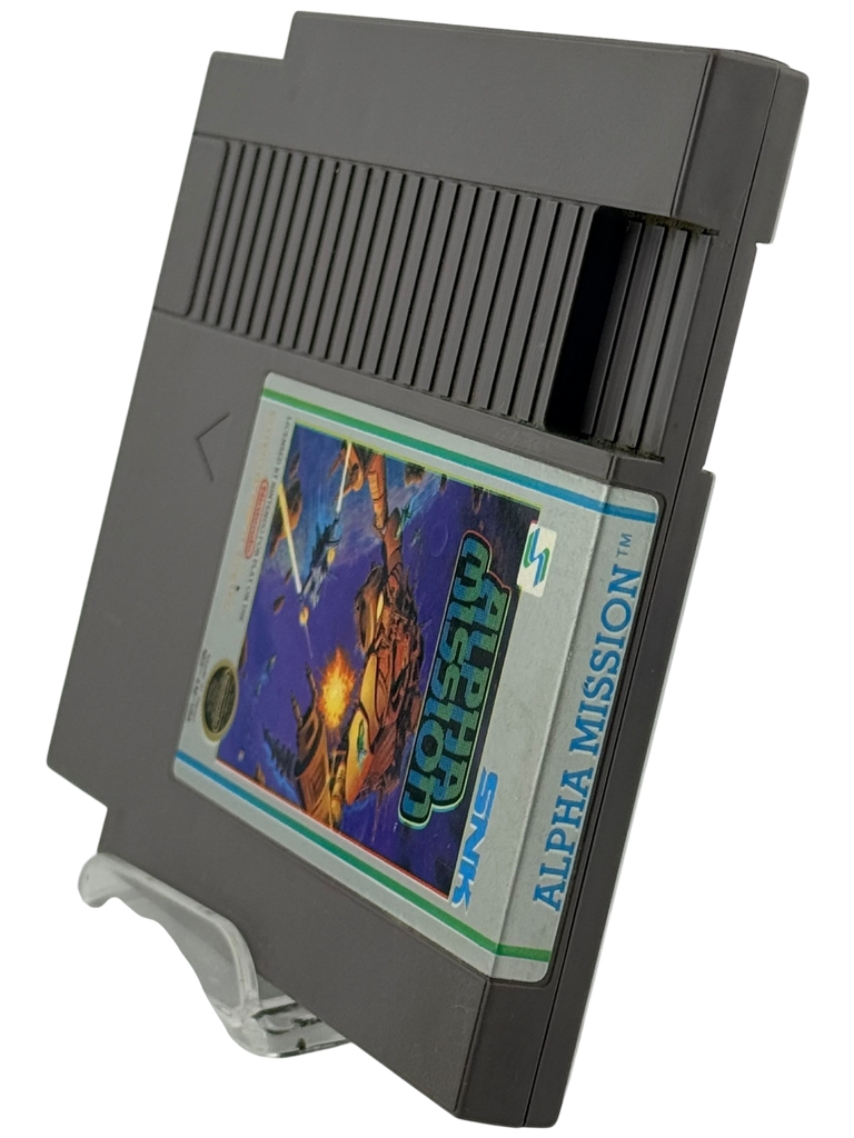 This listing is for Alpha Mission for the Nintendo Entertainment System (NES), loose cartridge version featuring the 5-screw variant. The game has been tested and is fully functional. The label is intact with only light wear consistent with age, and the cartridge shell shows minimal surface scuffing. This classic NES release does not include the original box or manual. Please refer to photos for the exact condition before purchasing.