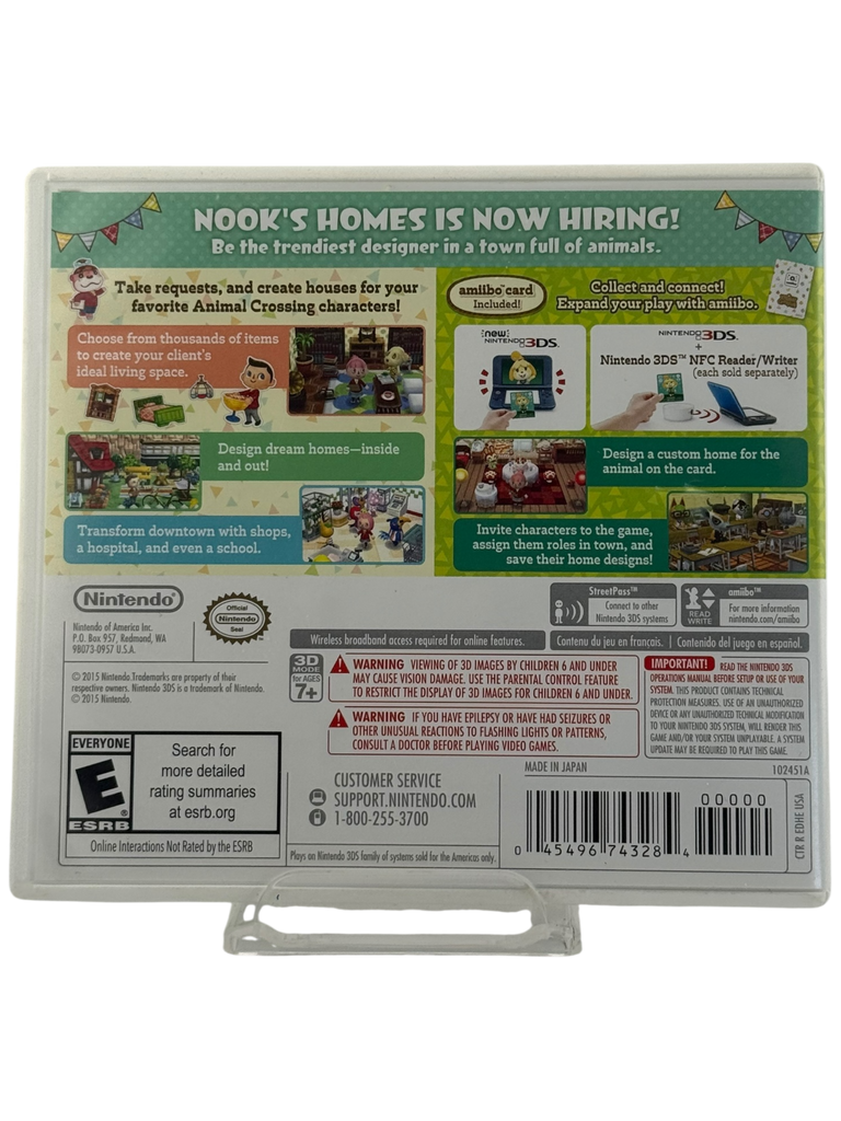 A delightful spin on the Animal Crossing series, this title is perfect for collectors, fans of cozy design games, or anyone who loves bringing charm and creativity to the 3DS.
