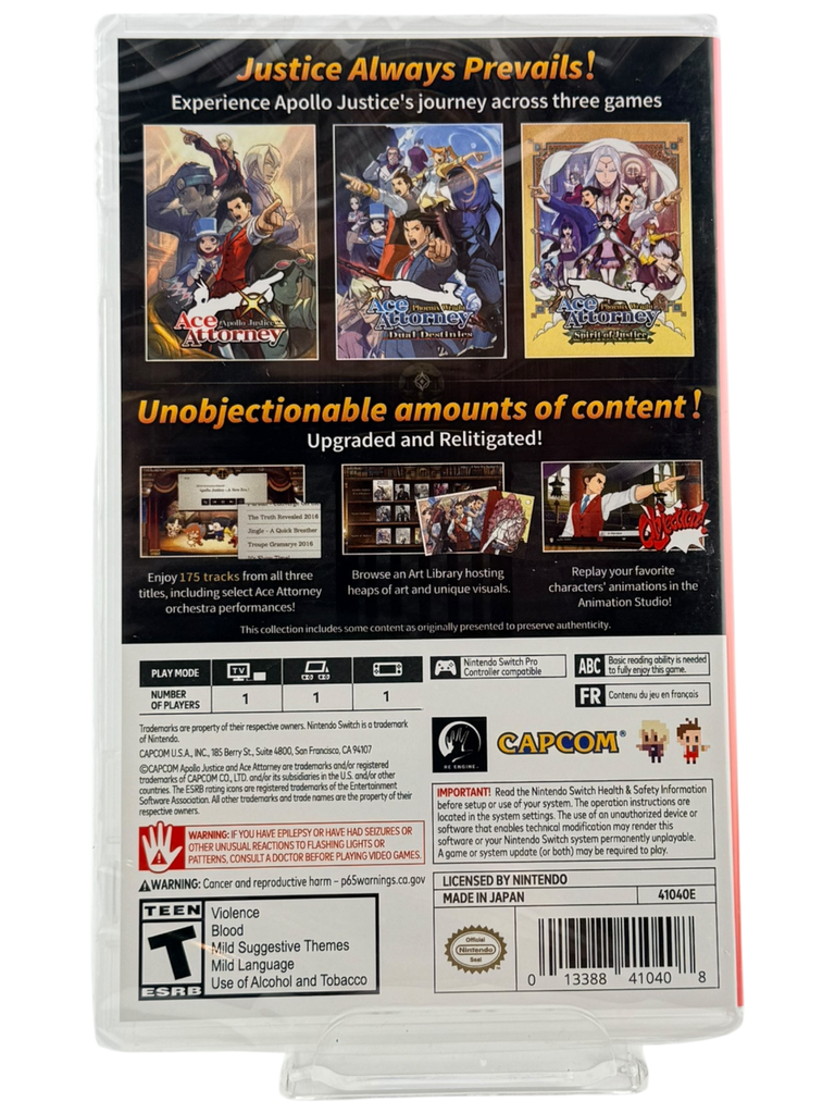 New and factory sealed. This Nintendo Switch copy of Apollo Justice: Ace Attorney Trilogy is brand new with the original shrink wrap intact and unbroken. The case, cover art, and seal are in excellent retail condition with no signs of prior opening or use. All original contents are included as issued by the publisher. Please review photos for exact cosmetic condition.