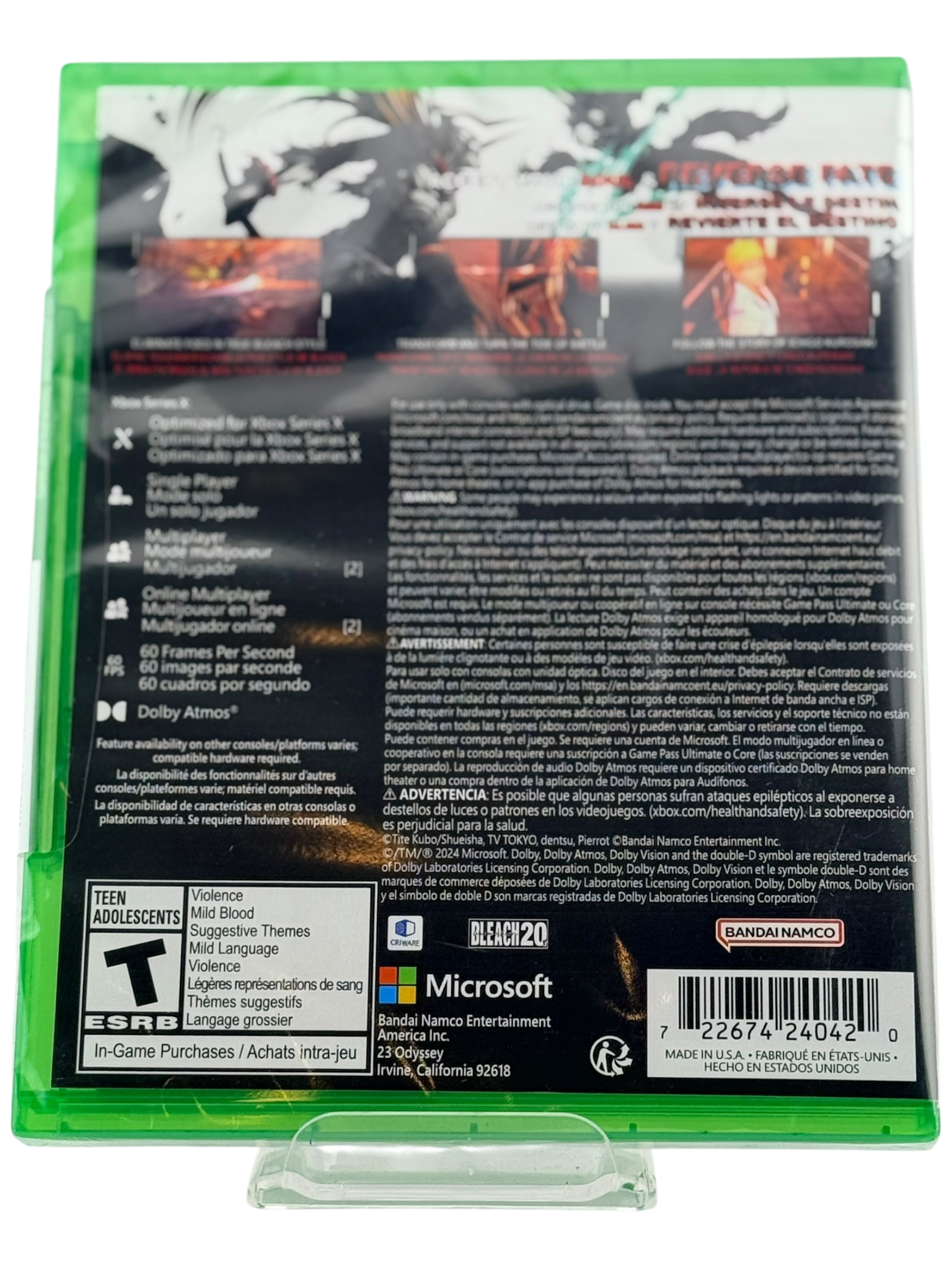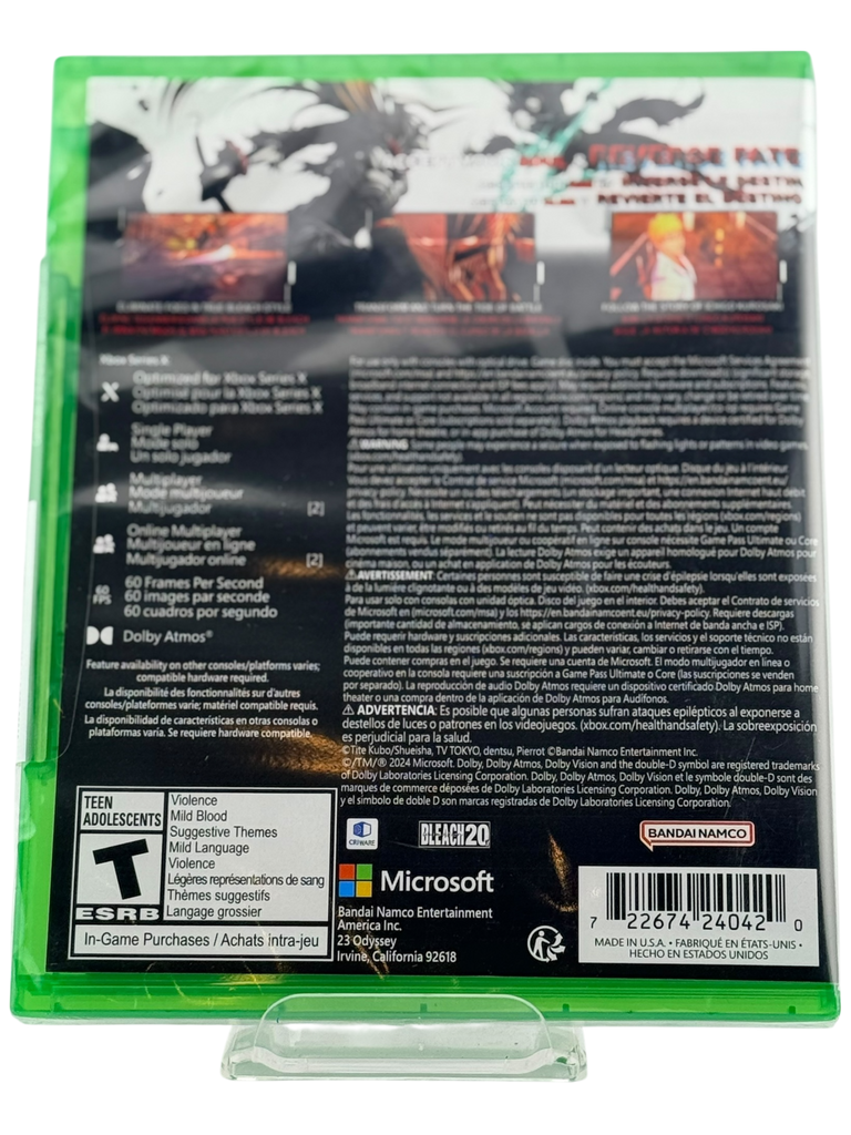 This listing is for Bleach: Rebirth of Souls for the Xbox Series X, brand new and factory sealed. The original retail seal is unbroken with no tears, splits, or reseals. The case is clean, corners are sharp, and factory wrap shows only minimal handling wear. This item includes all original components as packaged by the manufacturer. Please review photos for the exact condition before purchasing.