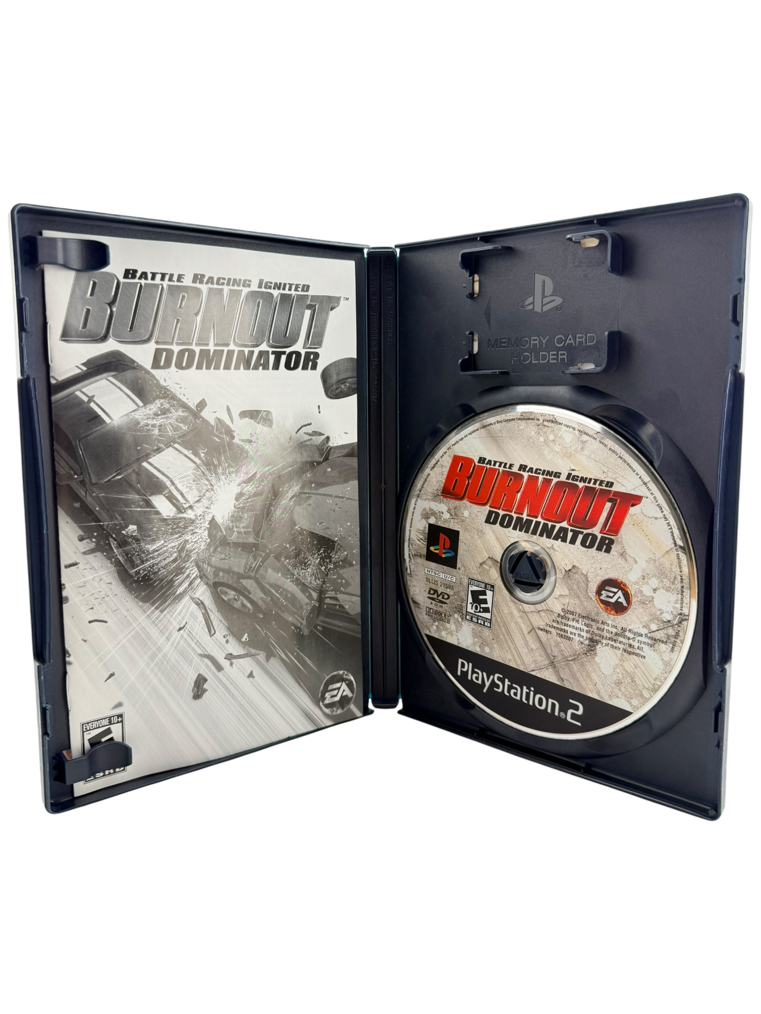 This is a complete-in-box (CIB) copy of Burnout Dominator for PlayStation 2. The original game disc, manual, and case are all included. The disc has been inspected and is in good working condition. The case and cover art are original and show light signs of normal shelf wear consistent with age. The manual is included and intact. Please review the photos carefully for exact cosmetic condition, as they are part of the description.