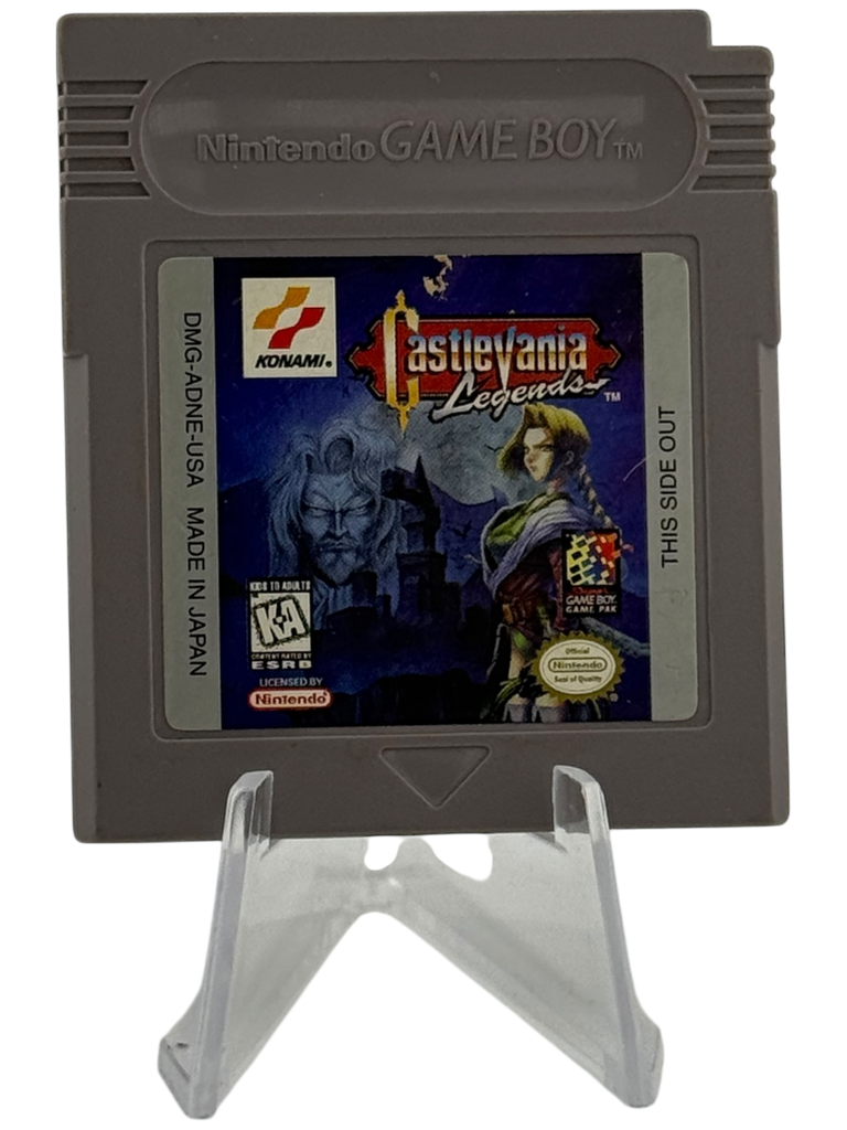 This Castlevania Legends is a loose cartridge for the Nintendo Game Boy. It includes the authentic original game cartridge only — no box or manual. The cartridge has been fully tested and verified authentic, with the save function confirmed operational (battery tested or replaced if applicable). The label is clean and legible with vibrant color, and the contacts have been cleaned and polished for optimal performance. All photos depict the exact item you will receive.
