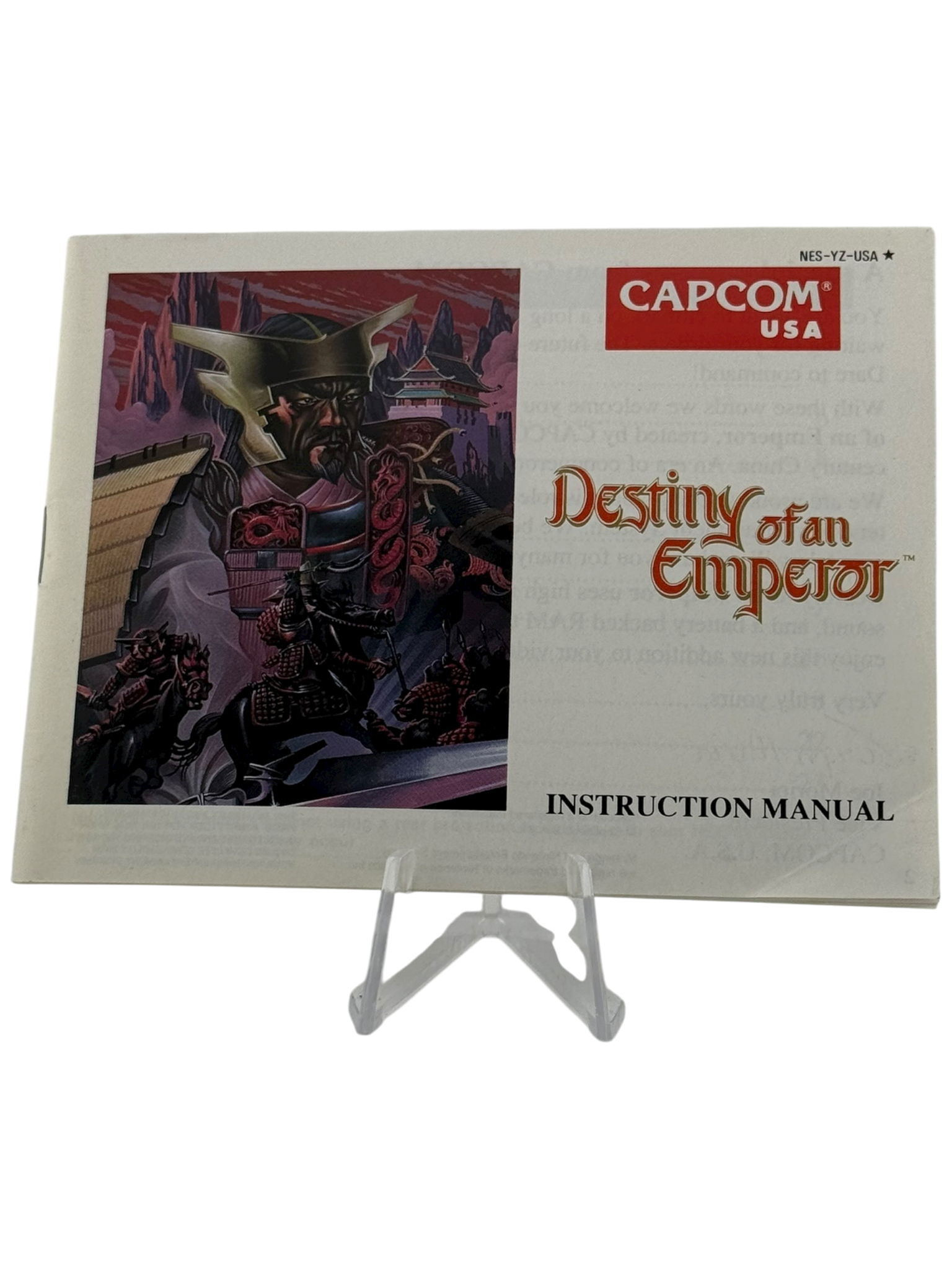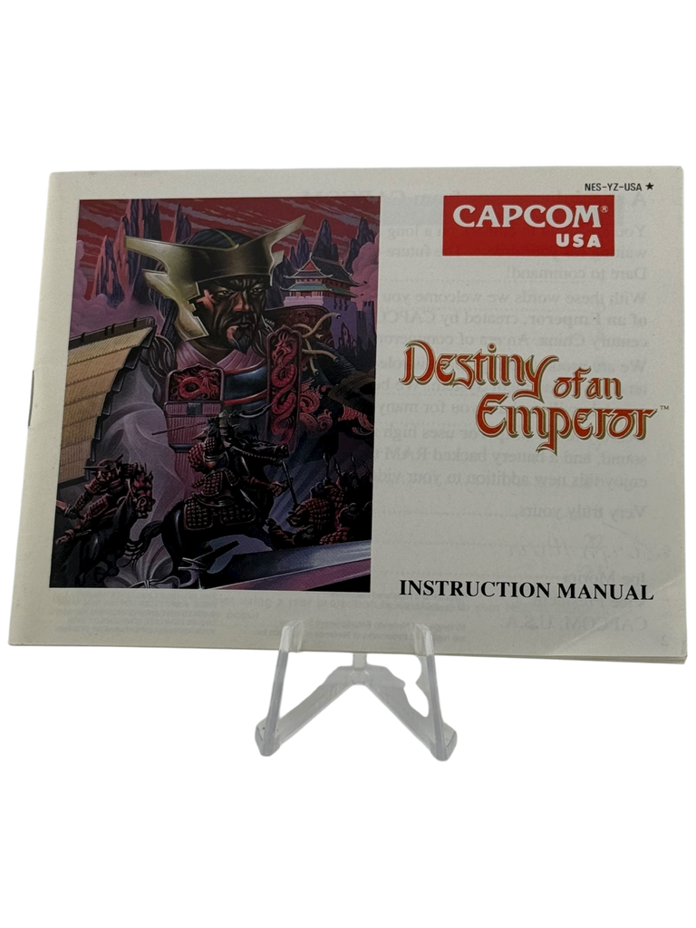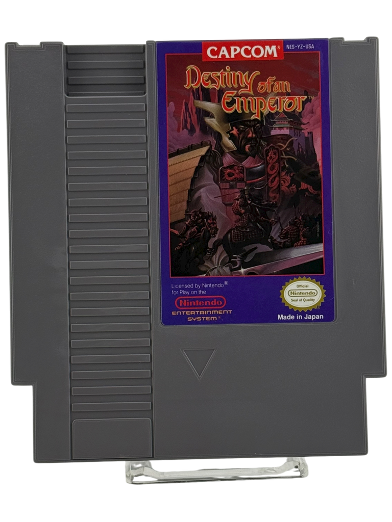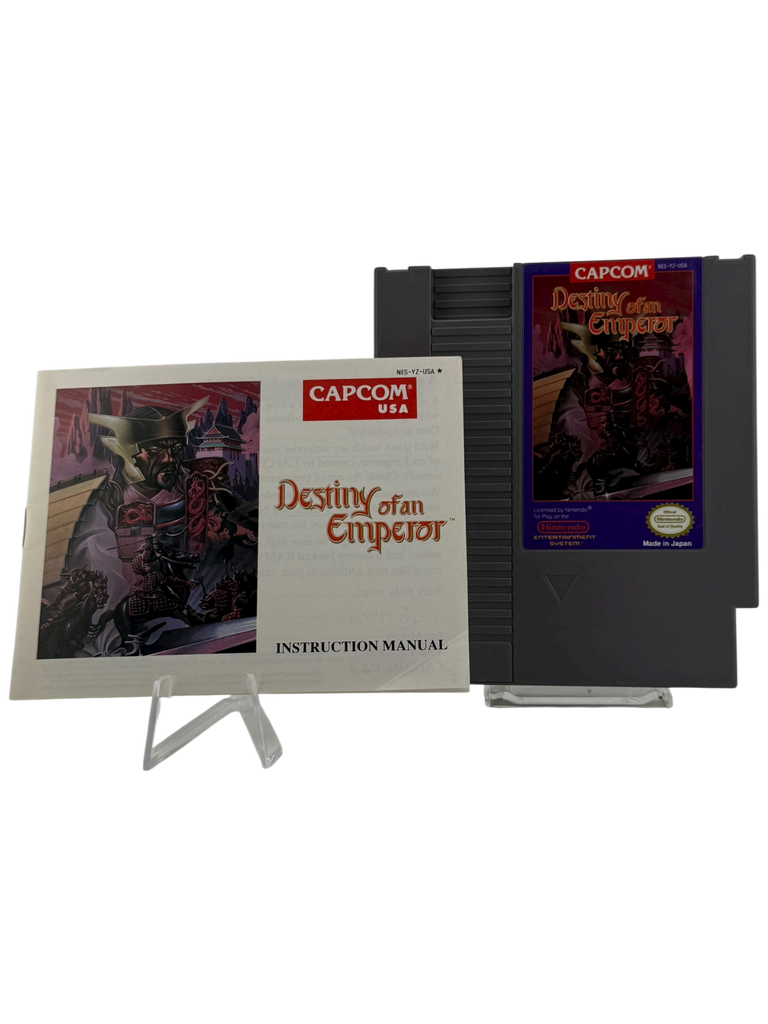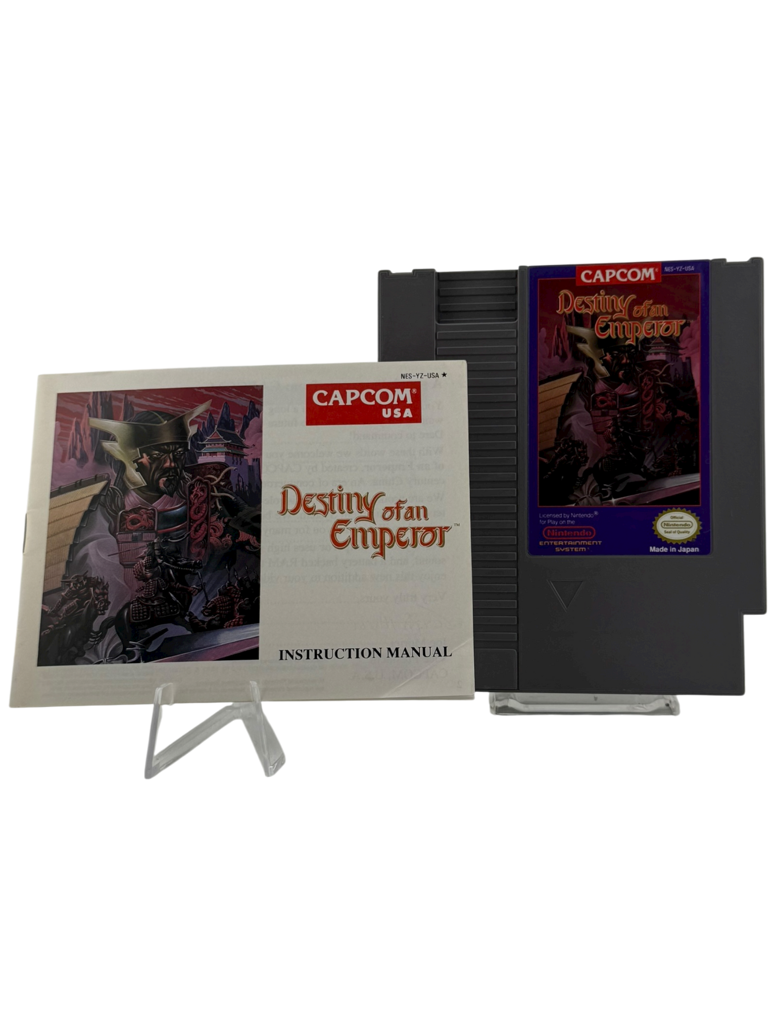 This is a copy of Destiny of an Emperor for the Nintendo Entertainment System (NES) that includes the original game cartridge and instruction manual. The cartridge has been tested and is fully functional, showing light wear consistent with age. The manual is intact and in good condition, with minor handling wear. The original box is not included. Please review the photos provided for a detailed look at the item’s condition.