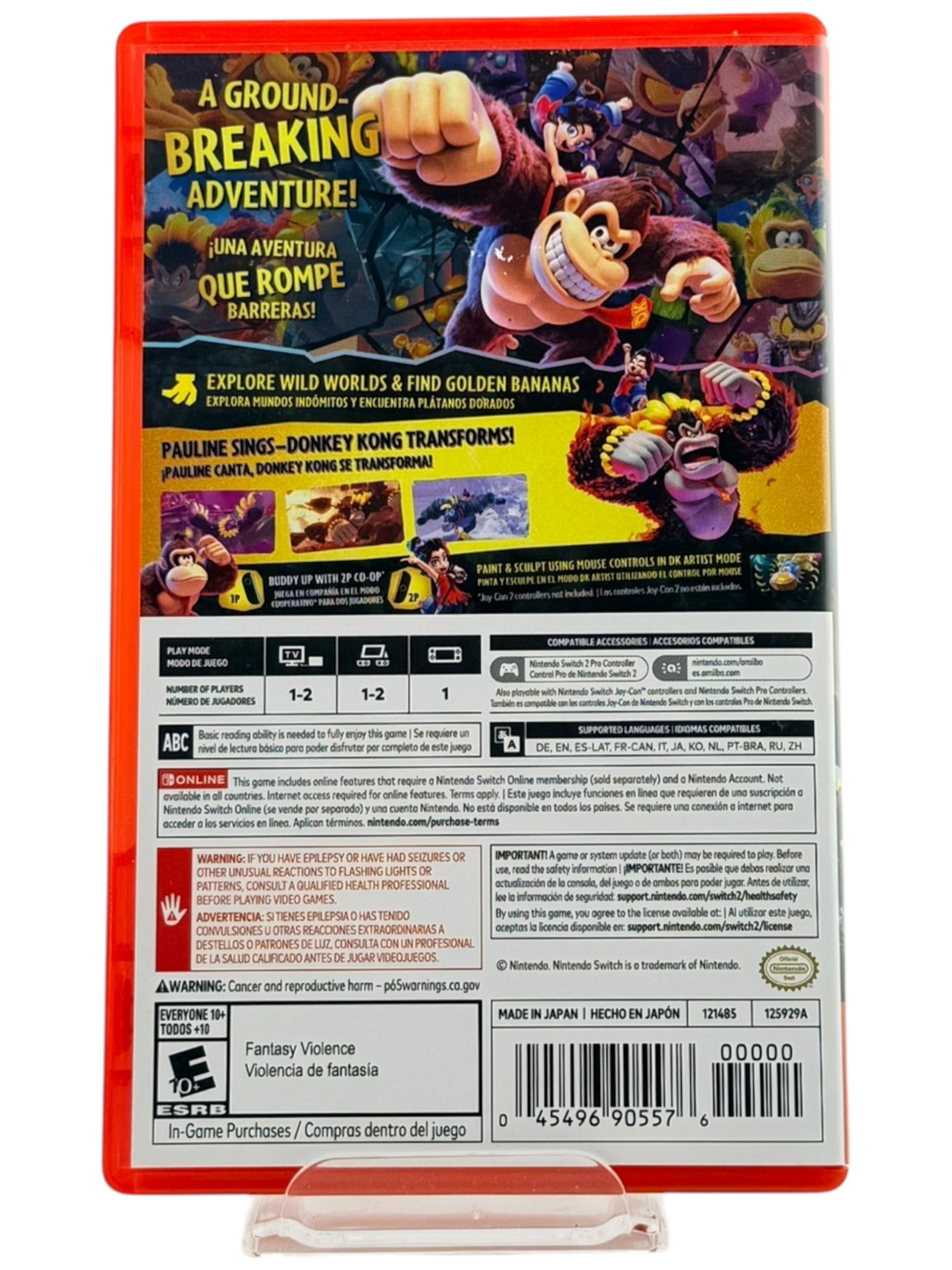 Item Description: Donkey Kong Bananza for Nintendo Switch 2 delivers classic platforming action infused with modern polish, bringing Donkey Kong back into the spotlight with bold level design, vibrant visuals, and tightly tuned gameplay. Players swing, smash, and barrel-blast through colorful environments packed with secrets, collectibles, and cleverly designed challenges that reward skillful movement and exploration. The game blends fast-paced platforming with moments of puzzle-solving and spectacle, capturing the playful spirit the series is known for while taking advantage of enhanced Switch 2 performance for smoother animations and richer environments. This Complete in Box copy is an excellent addition for Nintendo collectors and fans of iconic platformers, offering both nostalgic appeal and a fresh, energetic adventure that looks great on the shelf and plays even better.