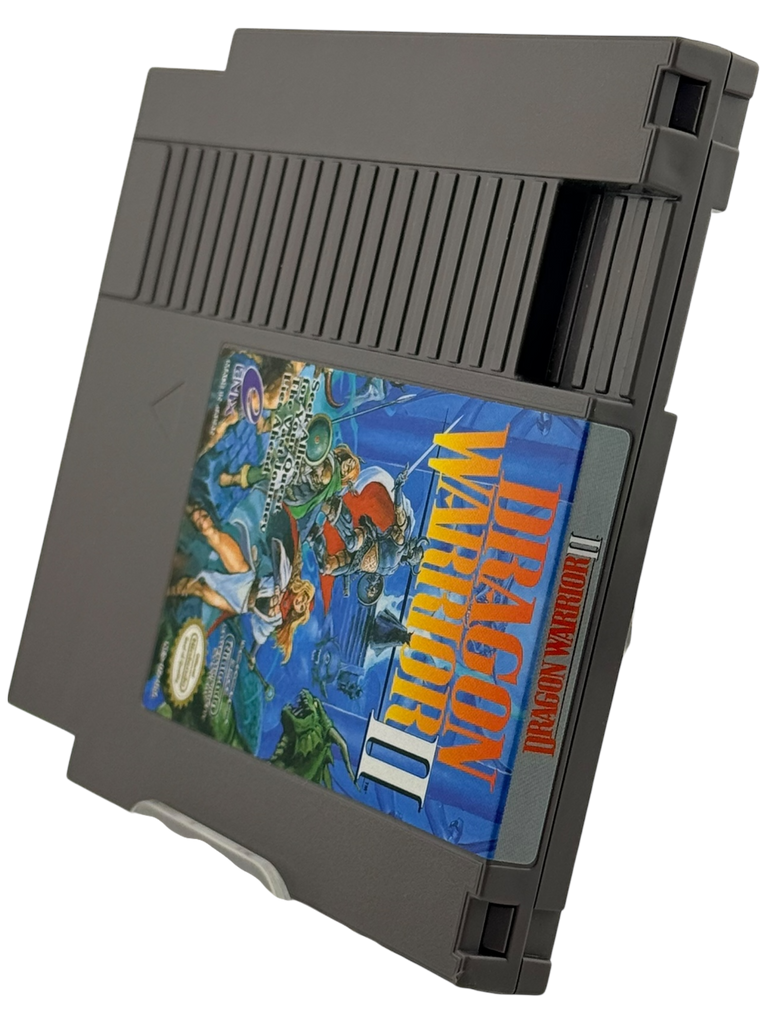 Players guide the Prince of Midenhall and his royal cousins — the Prince of Cannock and the Princess of Moonbrooke — as they unite to defeat the evil sorcerer Hargon and restore peace to the land. Featuring an upgraded combat system, a sweeping soundtrack, and hours of challenging exploration, Dragon Warrior II laid the foundation for future RPG classics and remains a cornerstone of NES role-playing history.