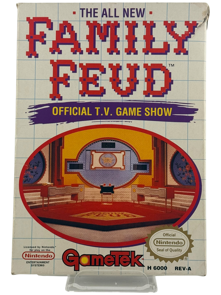 Bring the classic TV game show to your NES with Family Feud! Featuring survey-style questions and fast-paced rounds, players compete to guess the most popular answers to everyday questions. Up to five family members can team up, making it a fun multiplayer party experience that captures the spirit of the long-running show.