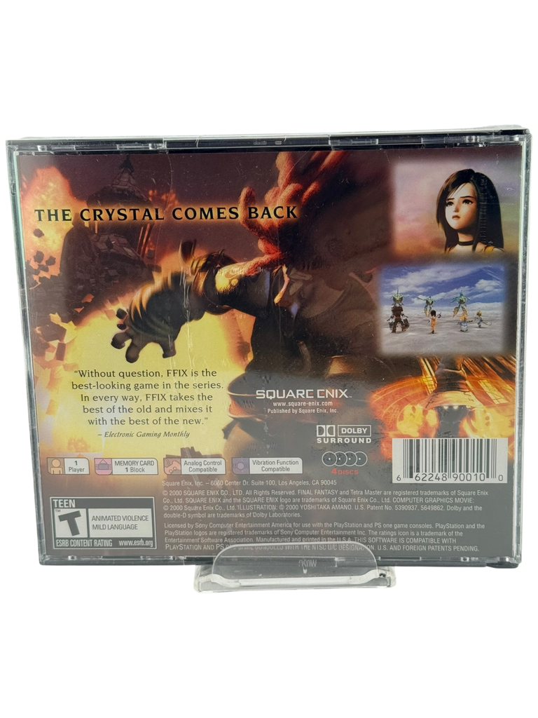 Item Description: Originally released in 2000, Final Fantasy IX marked a triumphant return to classic fantasy storytelling for the franchise—blending hand-crafted worlds, unforgettable characters, and a legendary Nobuo Uematsu score. This sealed PlayStation 1 edition features the complete 4-disc adventure exactly as it appeared on store shelves during the PS1 era. Whether you’re a lifelong Final Fantasy fan or building a retro collection that showcases true RPG history, a sealed FFIX is a rarity that continues to grow in desirability. This copy has been preserved in excellent condition and ships with extreme care to protect the seal and case. Bring home one of the most beloved RPGs ever released—untouched and waiting for its next chapter in your collection.