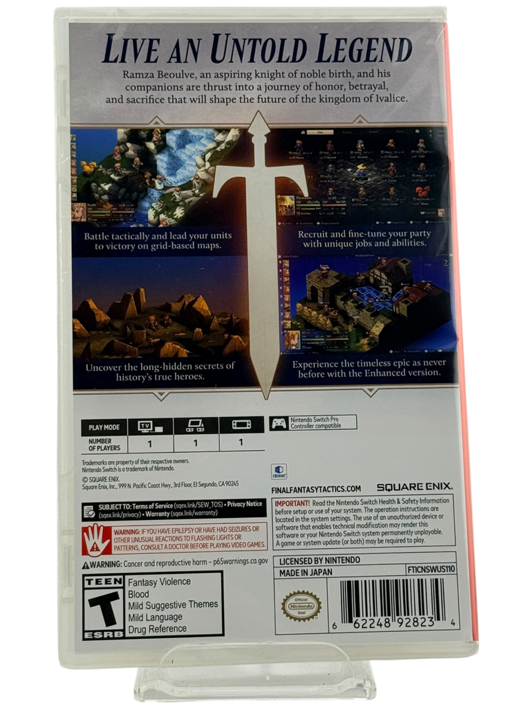 With portable play and crisp visuals, the Switch release gives both veterans and newcomers the chance to immerse themselves in one of Square Enix’s most celebrated strategy experiences. Whether you’re reliving the war-torn conflicts of Ivalice or stepping onto the battlefield for the first time, this sealed edition ensures you own a pristine collector’s copy of a timeless RPG masterpiece.
