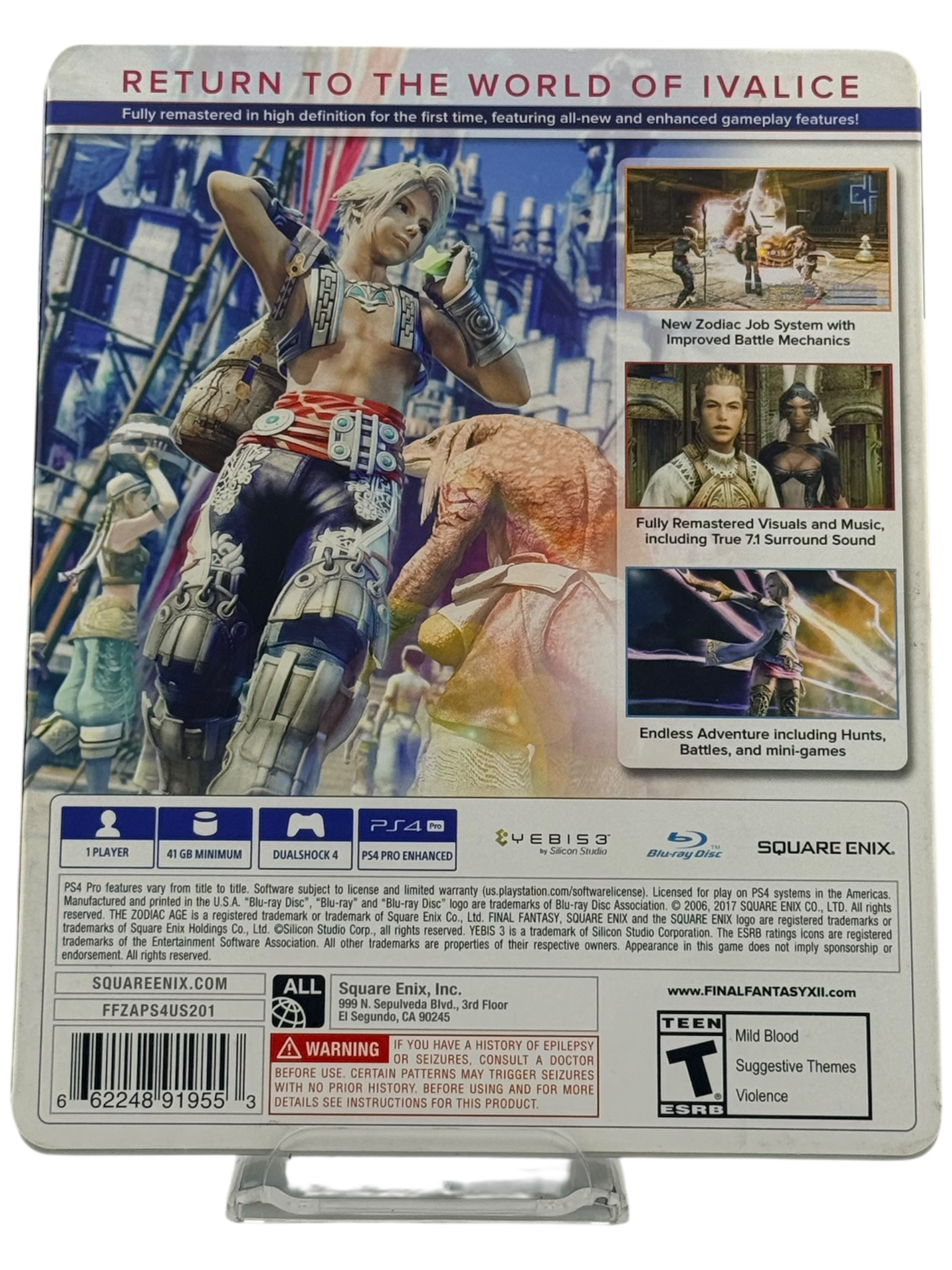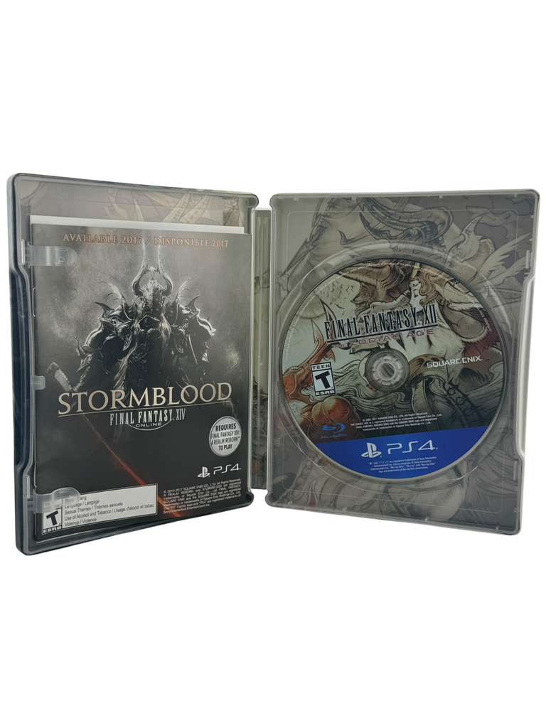 This is an authentic Final Fantasy XII: The Zodiac Age [Limited SteelBook Edition] for PlayStation 4. The listing includes the original game disc, collectible SteelBook case, and any included inserts or materials, all in excellent condition. The disc has been tested and verified to function properly, and the SteelBook case shows only minor surface wear from gentle handling. All materials are original and official — no reproductions or replacements are included. Please review all photos for an accurate representation of condition before purchase.