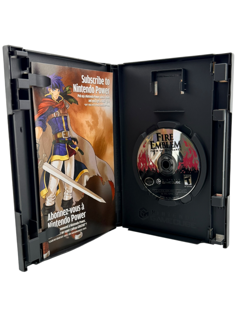 This is a game and box copy of Fire Emblem: Path of Radiance for Nintendo GameCube. The original game disc and original case with cover art are included. The manual is not included. Any additional original inserts that came with this copy are included as shown. The disc has been inspected and is in good working condition. The case and cover art are original and show light to moderate shelf wear consistent with age. Please review the photos carefully for exact cosmetic condition, as they are part of the description.