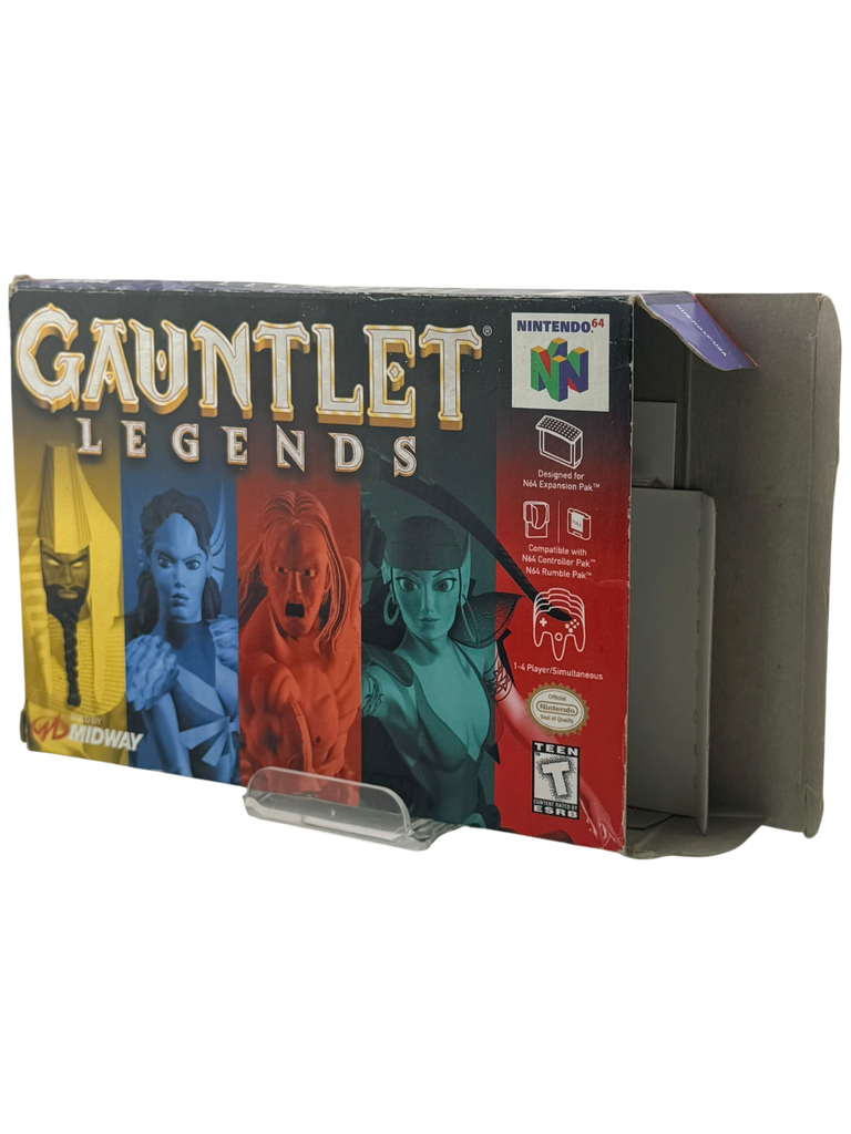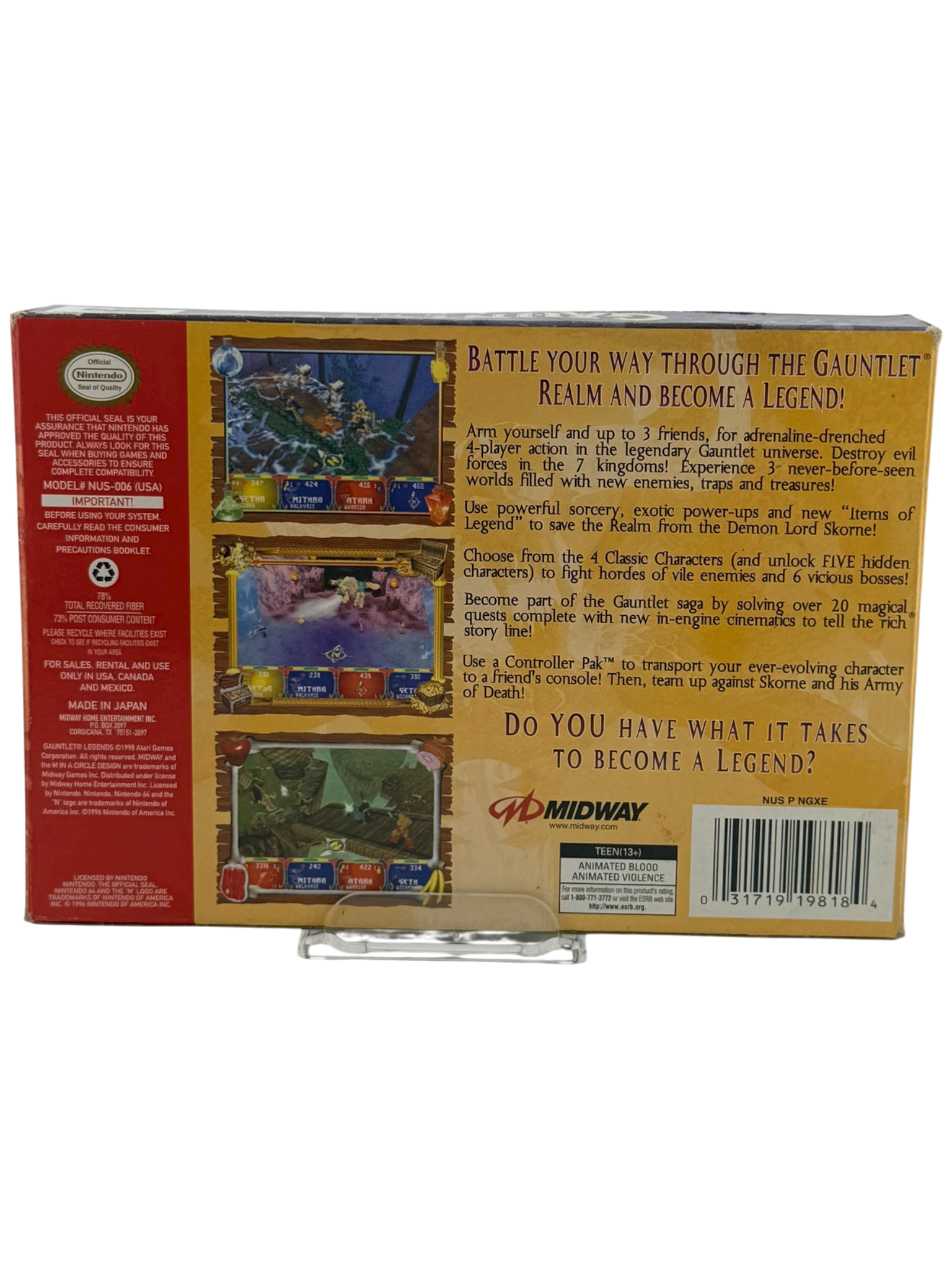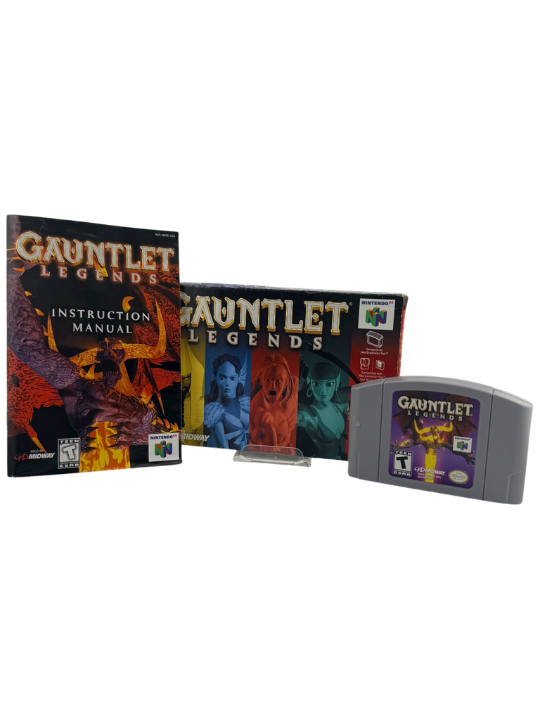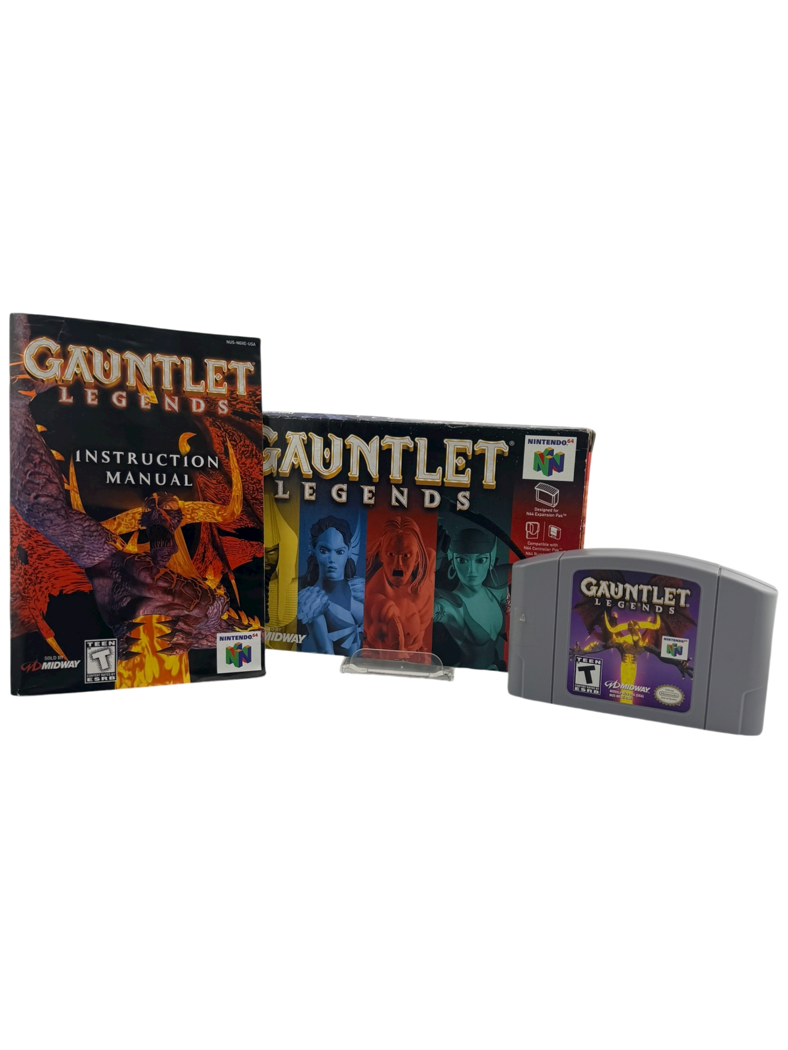 This is a complete in box copy of Gauntlet Legends for the Nintendo 64. The listing includes the original game cartridge, instruction manual, and box with cover art. The cartridge has been tested and is fully functional, showing light wear consistent with age. The manual and box are intact and in good overall condition, with some shelf wear typical of vintage N64 releases. Please review the photos provided for a clear view of the item’s condition.