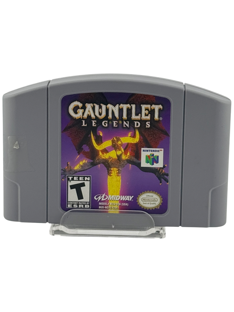 Gauntlet Legends brings the arcade dungeon-crawling action of the Gauntlet series to the N64, offering fast-paced hack-and-slash gameplay for up to four players. Choose from classic heroes like the Warrior, Valkyrie, Wizard, or Archer and battle through massive dungeons filled with hordes of enemies, bosses, and hidden secrets. Level up your character, gather power-ups, and work with friends to conquer the forces of darkness in true co-op style.