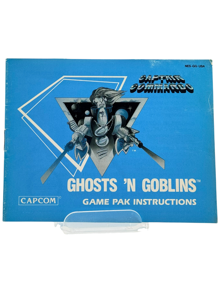 This listing is for Ghosts ’n Goblins on the Nintendo Entertainment System (NES), the 5-screw cartridge variant, and includes the original game cartridge and original instruction manual. The original box is not included. The cartridge is authentic and has been tested to ensure it boots and plays properly on original NES hardware. Label and cartridge shell show typical light wear consistent with age, and the manual is complete with visible handling wear but no missing pages. Please review the photos closely for exact cosmetic condition, as they are part of the item description.