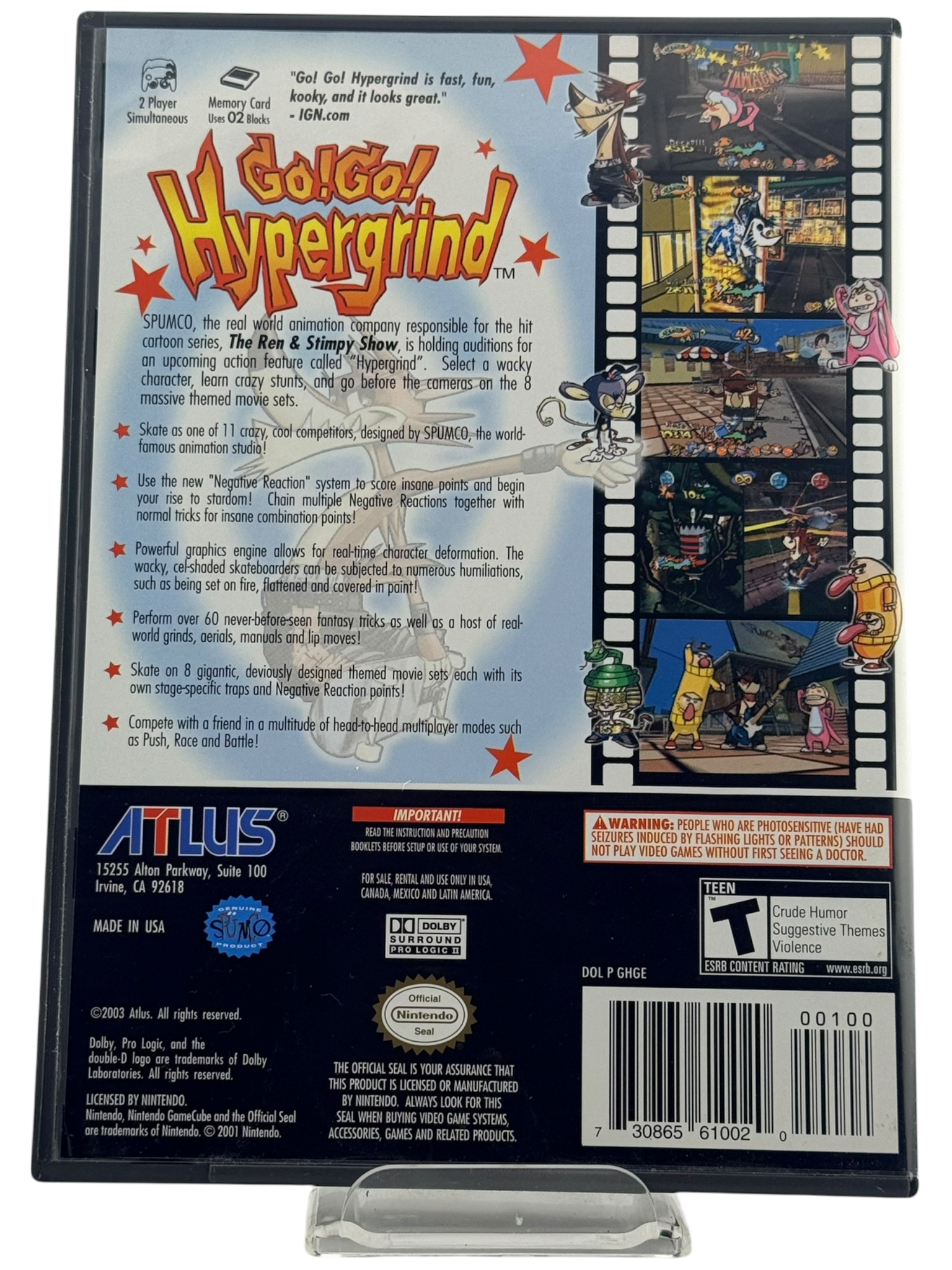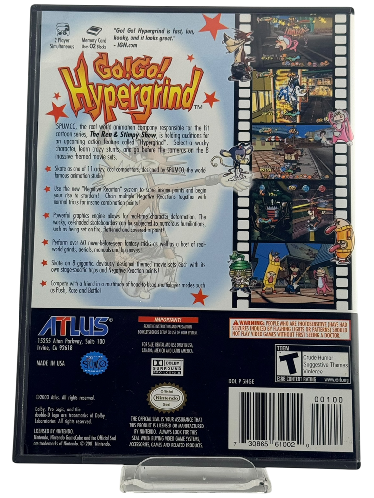 This is an authentic Go! Go! Hypergrind game for Nintendo GameCube. The listing includes the original game disc, manual, and GameCube case, all in excellent condition. The disc has been tested and confirmed to function perfectly, and the case and manual show only minimal shelf wear. All materials are original and official — no reproductions or replacements. Please review all photos for an accurate depiction of condition before purchase.