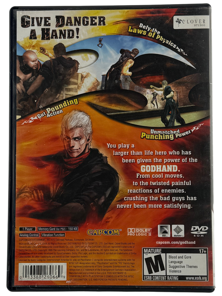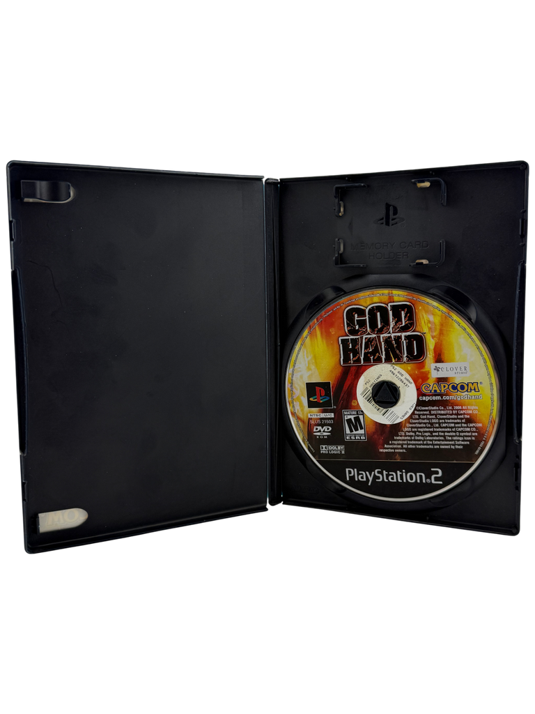 This is a copy of God Hand for PlayStation 2 that includes the original game disc and instruction manual. The original case with cover art is not included. The disc has been tested and is fully functional, showing only light wear from prior use. The manual is intact and in good condition with minor handling wear. Please review the photos provided for a clear view of the item’s condition.