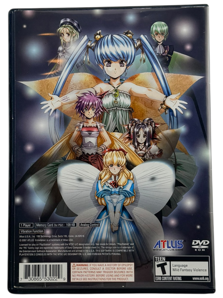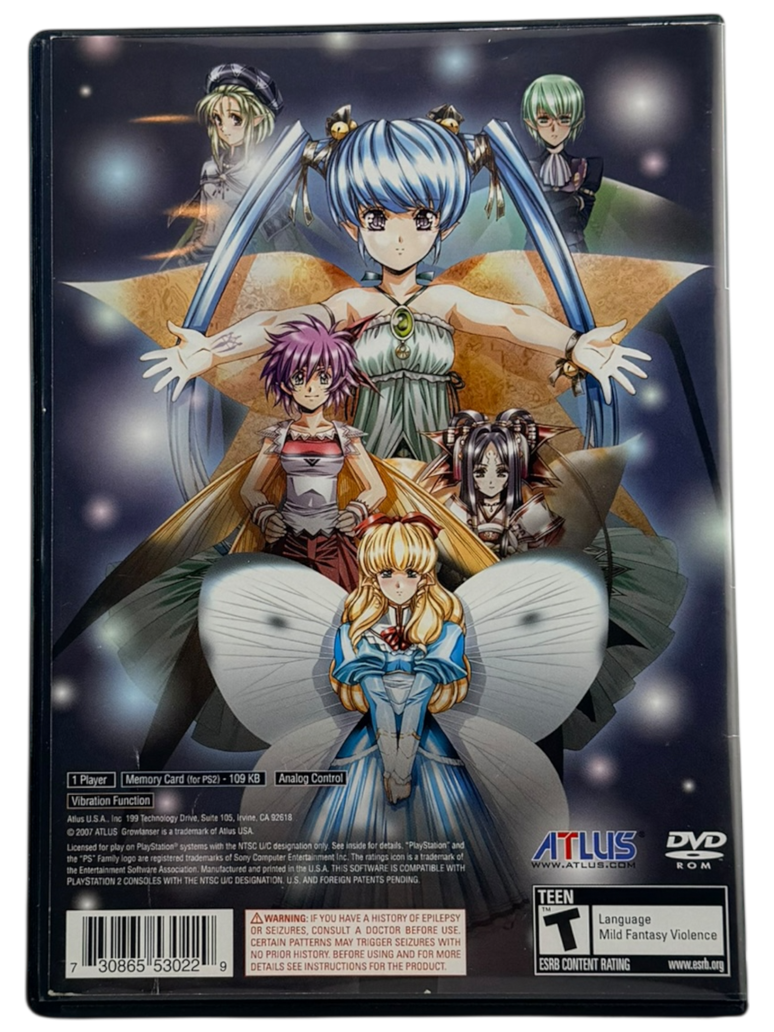 This is an authentic, pre-owned Complete in Box (CIB) copy of Growlanser: Heritage of War for the Sony PlayStation 2. The game has been inspected for condition and completeness, and it includes the original game disc, original manual, and original PS2 case.