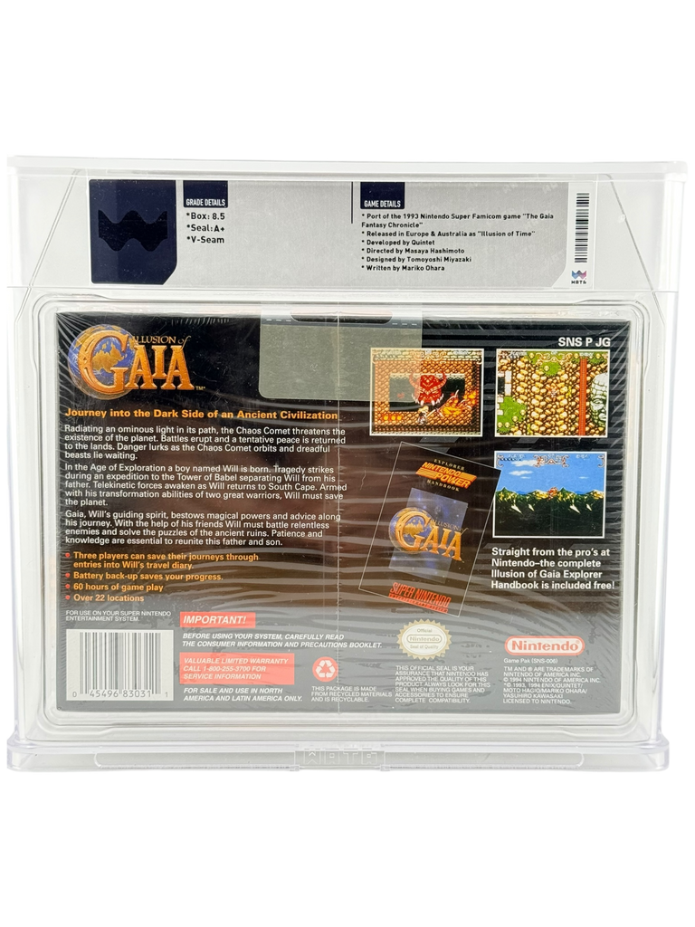 As a new and sealed, graded 8.5 copy, this is an exceptional collector-grade piece—highly sought after by SNES enthusiasts and RPG collectors alike. Combining historical significance, emotional impact, and pristine preservation, Illusion of Gaia in this condition is a true centerpiece for any serious retro game collection.