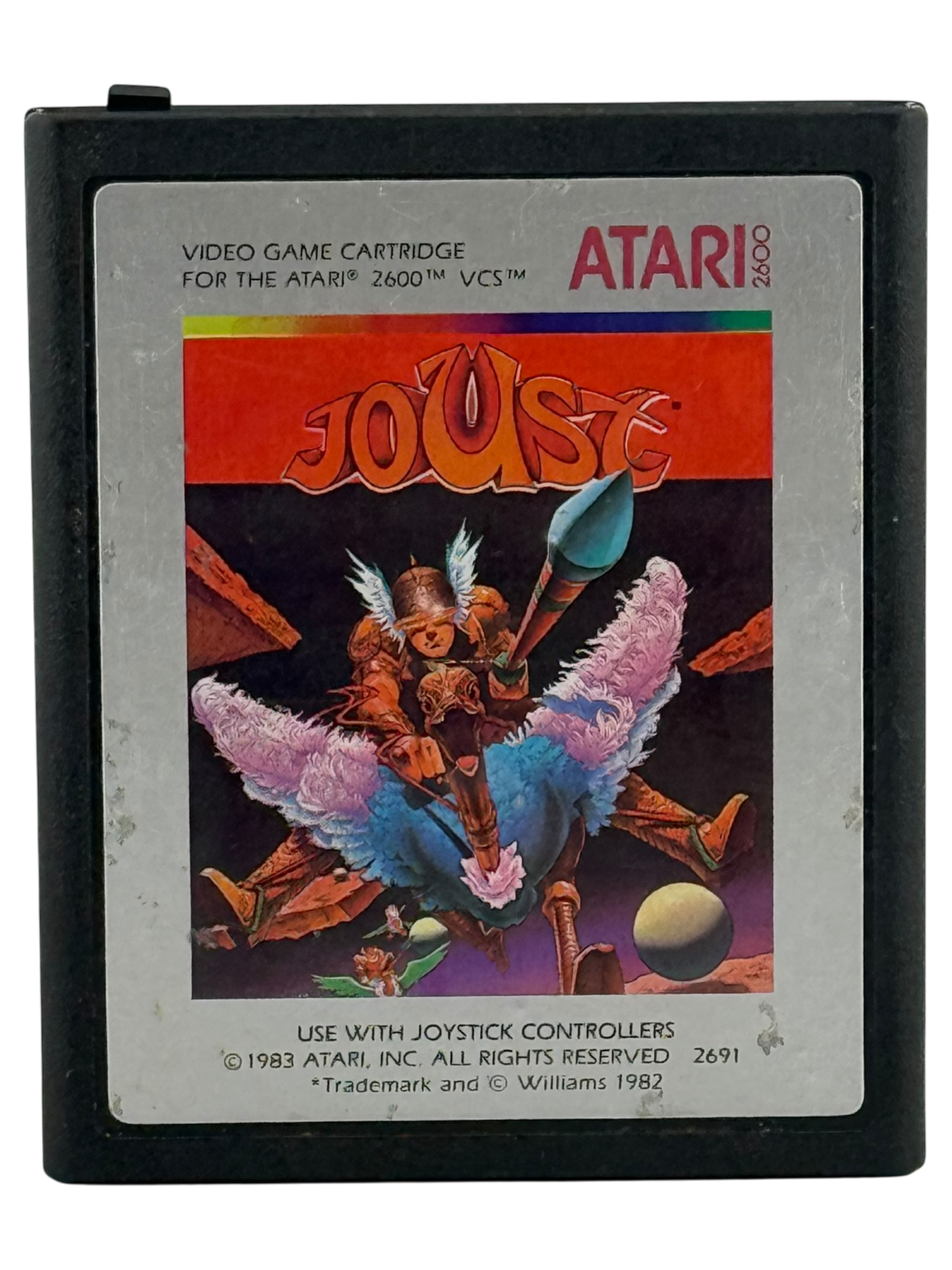Mount your flying ostrich and battle waves of enemy knights in Joust! This quirky arcade classic comes to the Atari 2600 with fast-paced, flap-powered action and iconic cooperative or competitive gameplay.