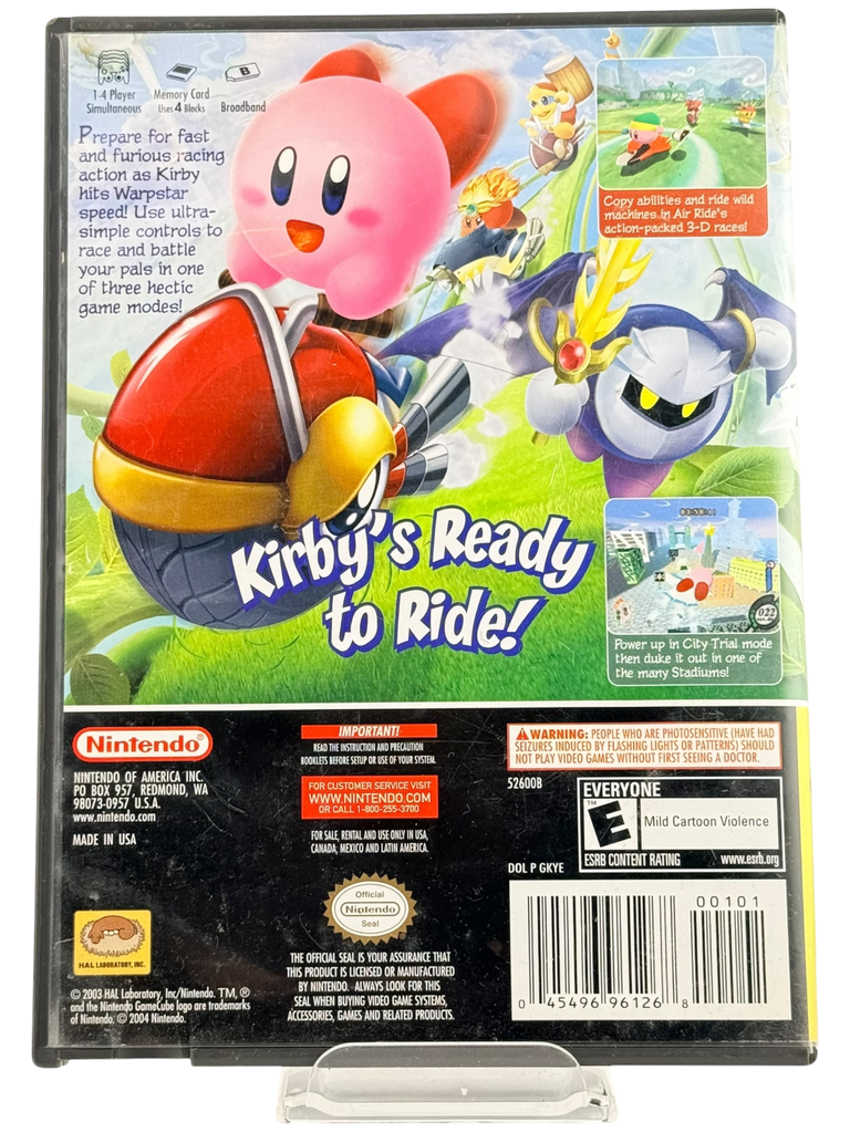 This listing is for a Complete in Box (CIB) Nintendo GameCube copy of Kirby Air Ride [Player’s Choice]. The game disc has been tested and is fully functional. This set includes the original GameCube game disc, original Player’s Choice case, cover art, and instruction manual. All components show light to moderate wear consistent with normal use and age. The case and manual may display minor edge wear or surface marks typical of GameCube packaging. Please review all photos carefully for exact cosmetic condition, as they depict the actual item you will receive.