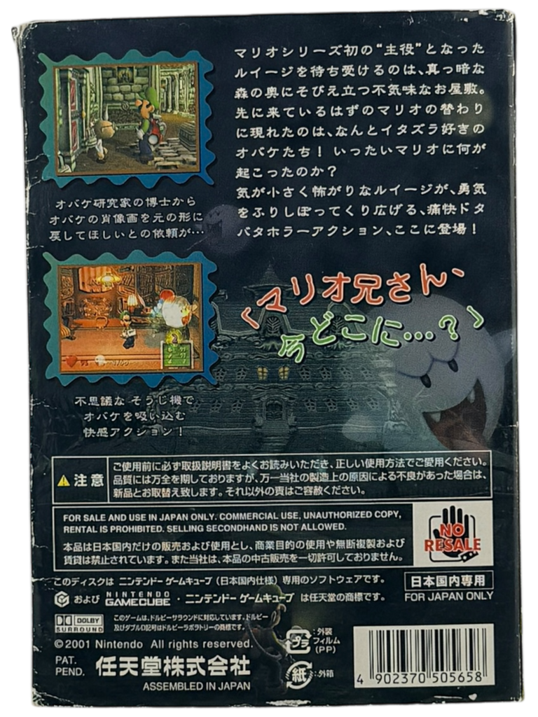 This is an authentic, pre-owned Complete in Box (CIB) copy of Luigi’s Mansion [JPN] for the Nintendo GameCube. The game has been inspected for condition and completeness, and it includes the original game disc, original manual, and original GameCube case.