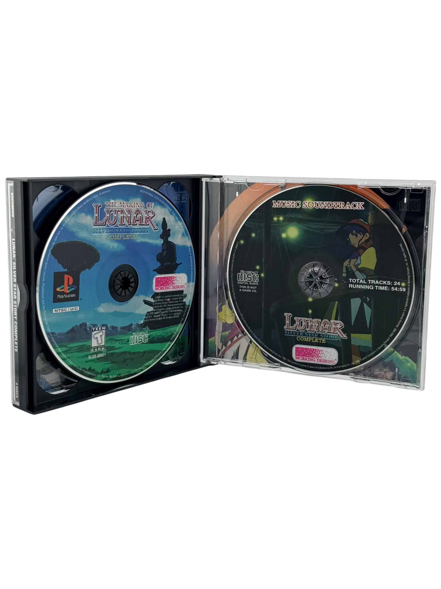 This Lunar: Silver Star Story Complete listing is Complete in Box (CIB) and includes the full Collector’s Edition contents: both game discs, the original PS1 jewel cases with artwork, the official manual, the Collector’s Edition hardbound artbook, the soundtrack CD, the exclusive “Making of” disc, and the original outer collector’s box. All items are authentic to the Working Designs release.
