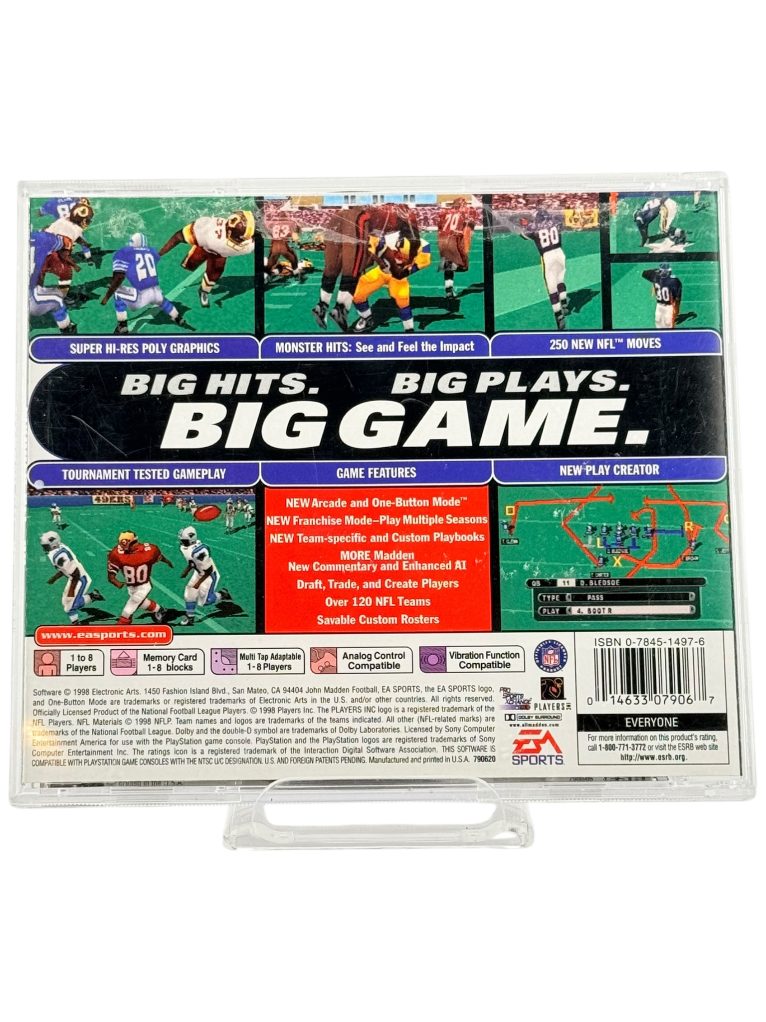 The game features updated NFL rosters from the 1998 season, improved AI, and expanded offensive and defensive playbooks. Enhanced animations, smoother controls, and broadcast-style presentation elements help deliver an authentic football experience that was a major step forward for the series at the time.