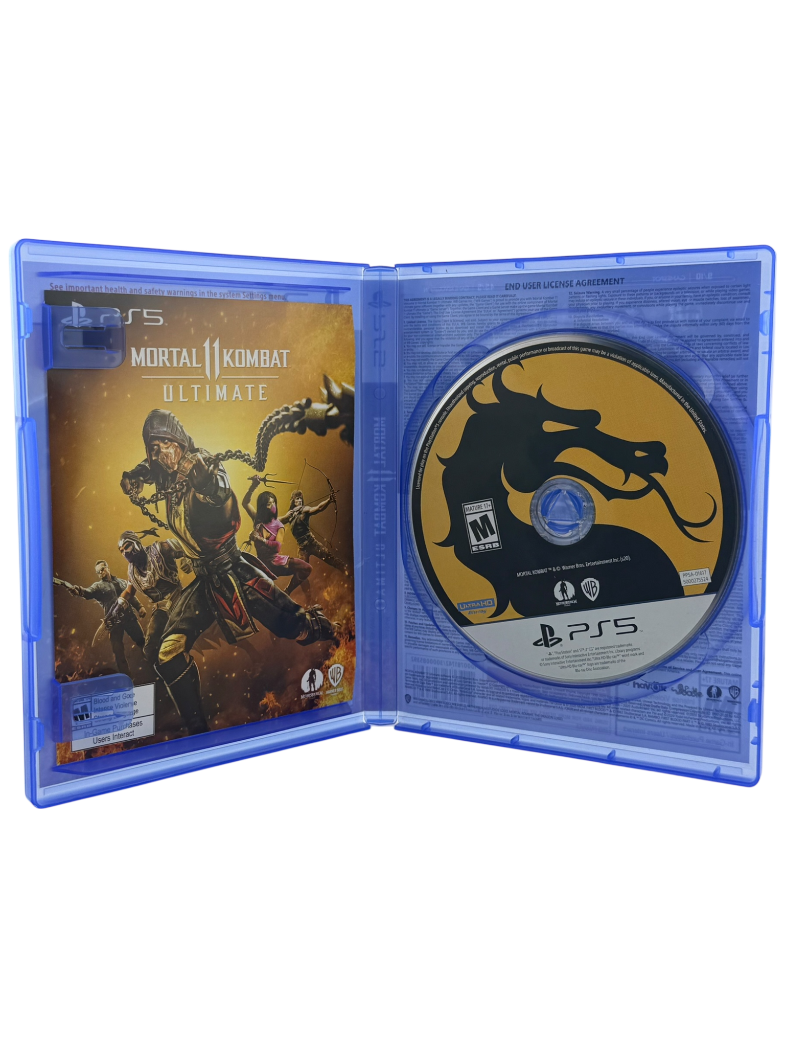 This is an authentic Mortal Kombat 11 Ultimate game for PlayStation 5. The listing includes the original game disc, inserts, and PS5 case, all in excellent condition. The disc has been tested and verified to function properly, and the case shows only minimal surface wear from normal handling. All materials are original and official — no reproductions or replacements. Please review all photos for an accurate representation of condition before purchase.