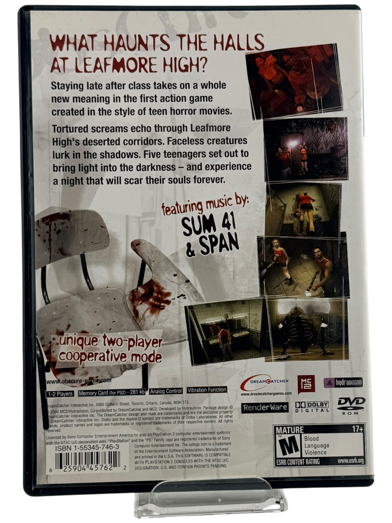 Get ready for a terrifying journey in Obscure for PlayStation 2, a survival horror game that combines creepy environments, chilling gameplay, and a gripping story. Play as a group of high school students who find themselves trapped in a dark and twisted version of their school, filled with deadly creatures and horrifying secrets. Work together to survive the night and uncover the truth behind the mysterious happenings in this psychological horror thriller.