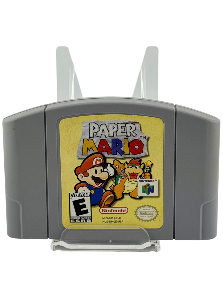 This Paper Mario listing for Nintendo 64 is a loose game cartridge only. The original box and manual are not included. The cartridge has been carefully cleaned, inspected, and fully tested to ensure it plays properly on authentic N64 hardware. The label remains bright and legible with only minor wear from normal handling. The cartridge shell is intact with no cracks or significant damage. Photos in the listing will show the exact item you will receive.