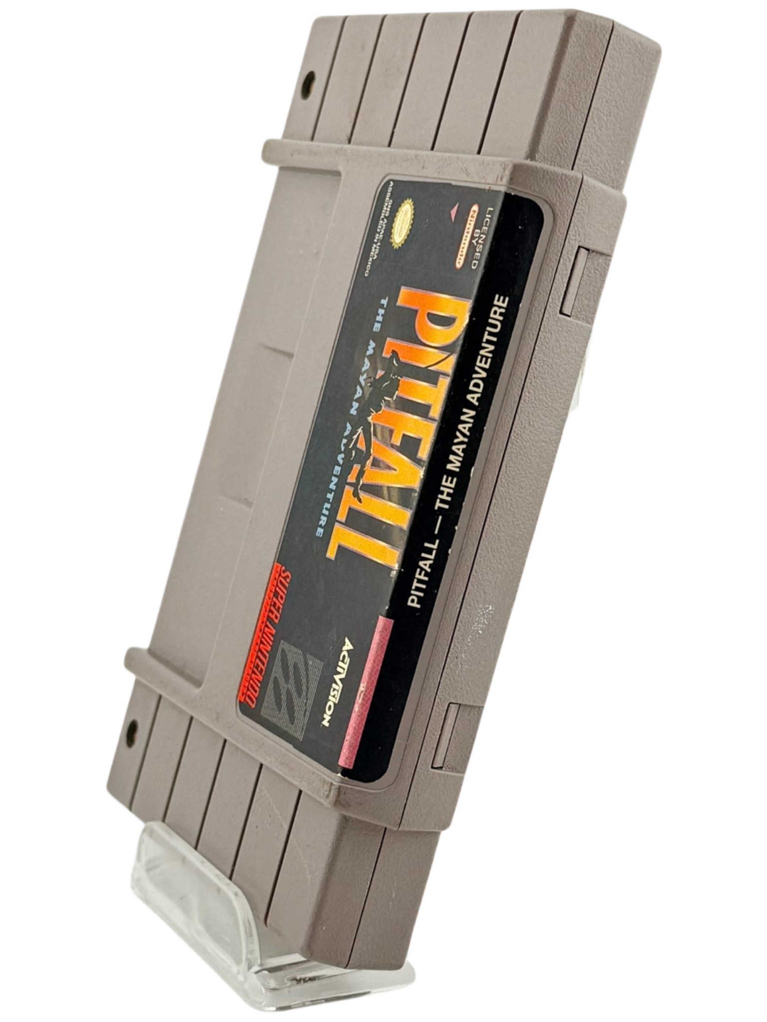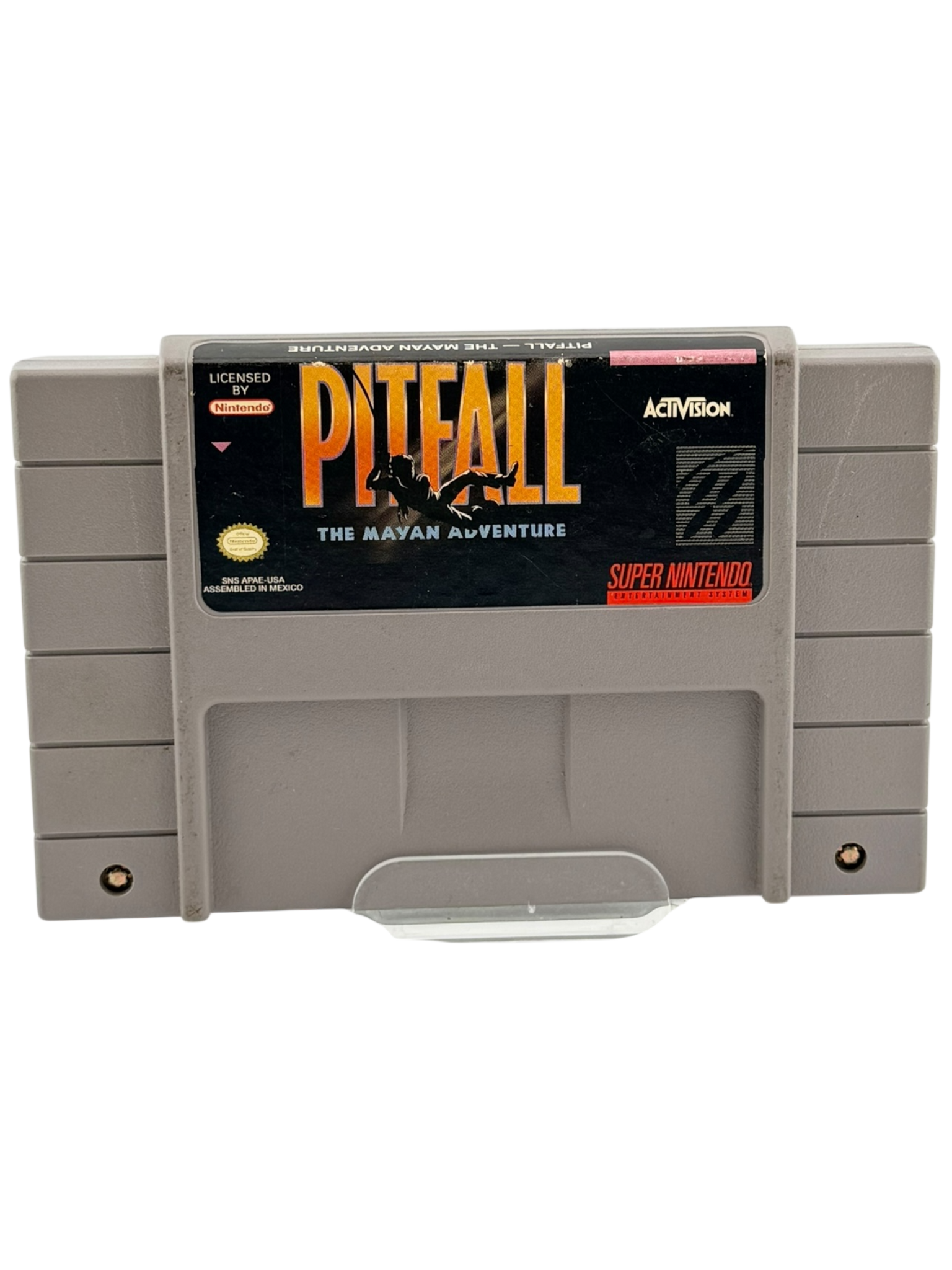 This listing is for a loose Super Nintendo (SNES) game cartridge of Pitfall: The Mayan Adventure. The original cartridge has been tested and is fully functional. The label and cartridge shell show light to moderate signs of wear consistent with normal use and age for a vintage SNES title. This item includes the game cartridge only—no original box or manual is included. Please review all photos carefully for exact cosmetic condition, as they represent the actual item you will receive.