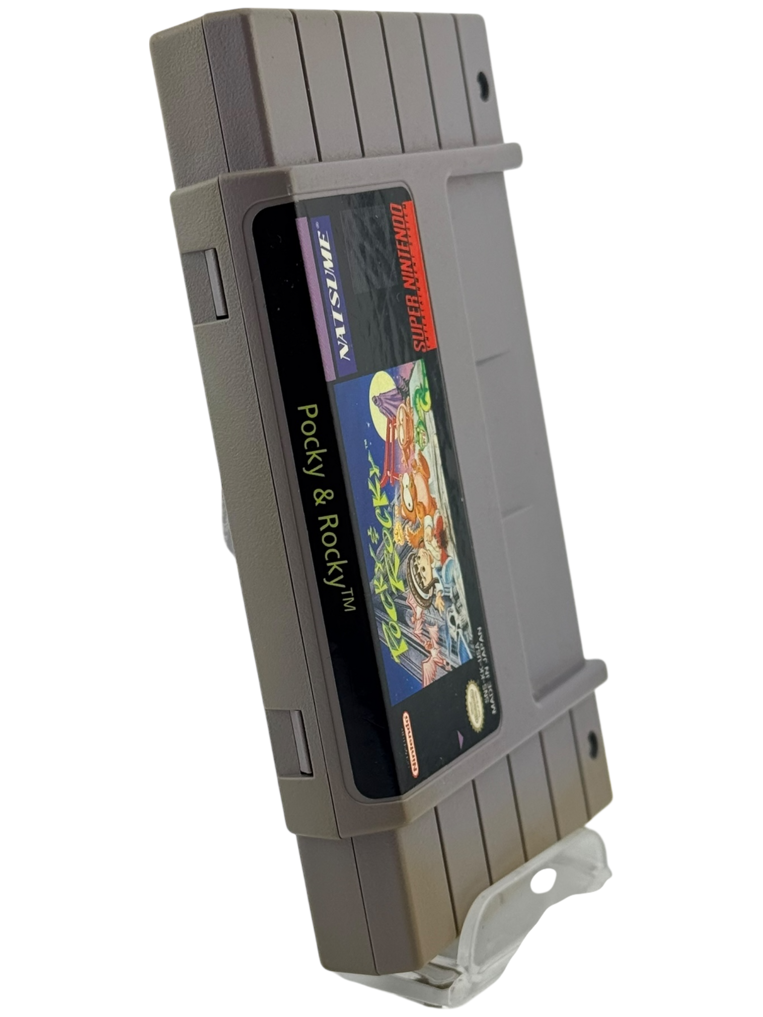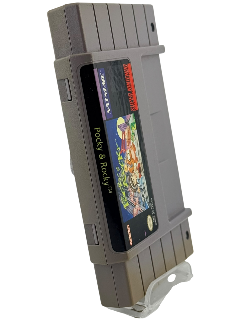 This listing is for a loose Super Nintendo (SNES) game cartridge of Pocky & Rocky. The original cartridge has been tested and is fully functional. The label and cartridge shell show light to moderate signs of wear consistent with normal use and age for a vintage SNES title. This item includes the game cartridge only—no original box or manual is included. Please review all photos carefully for exact cosmetic condition, as they represent the actual item you will receive.