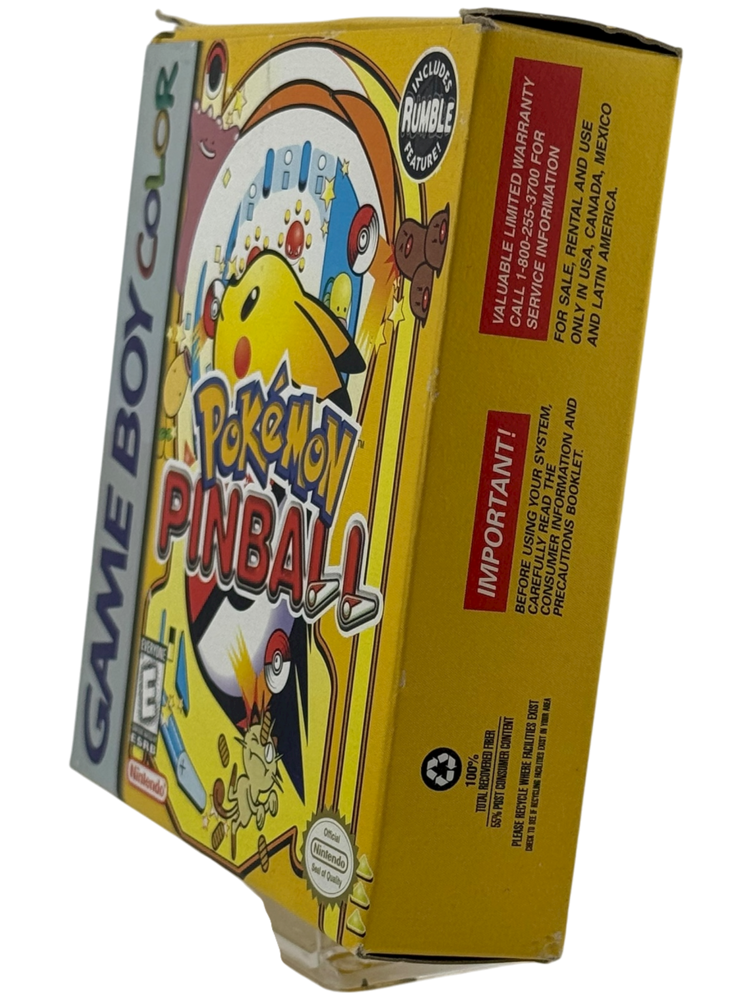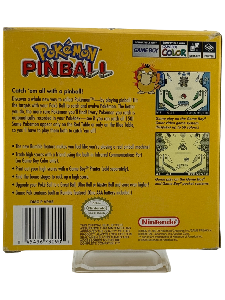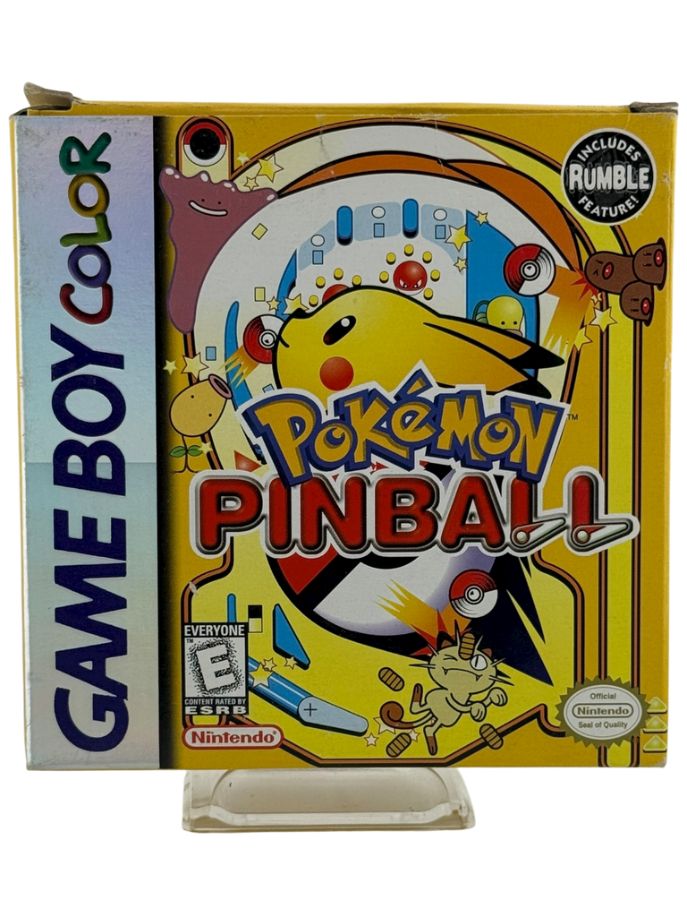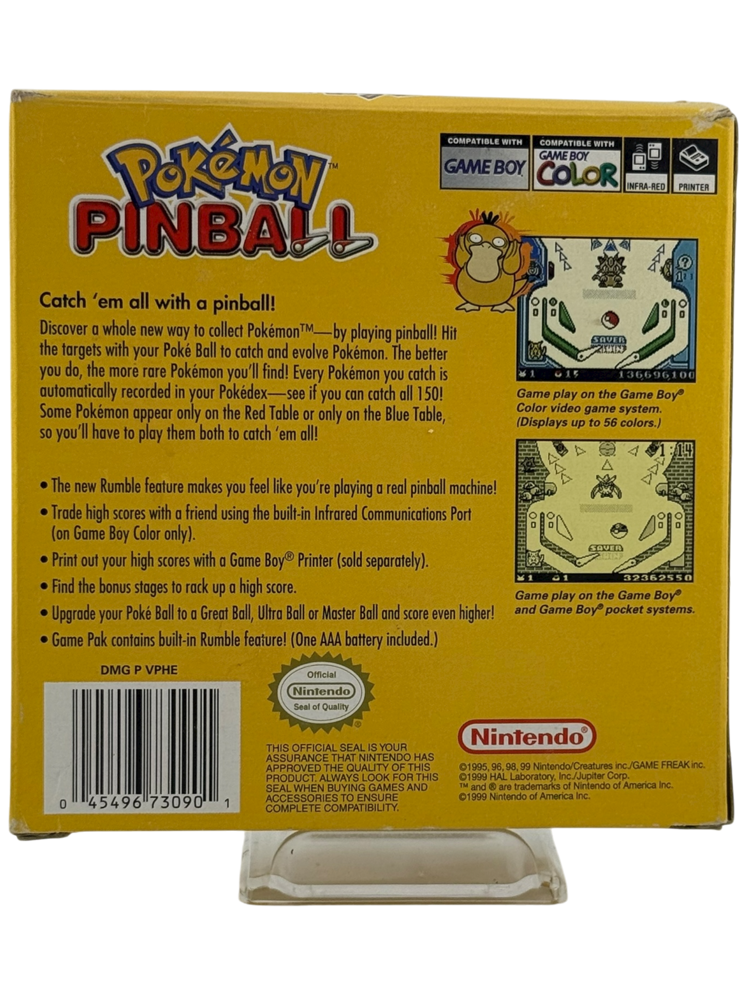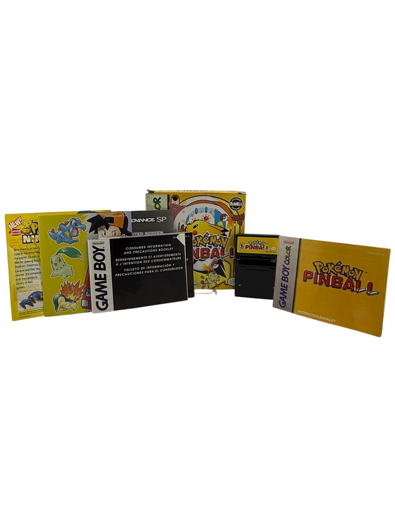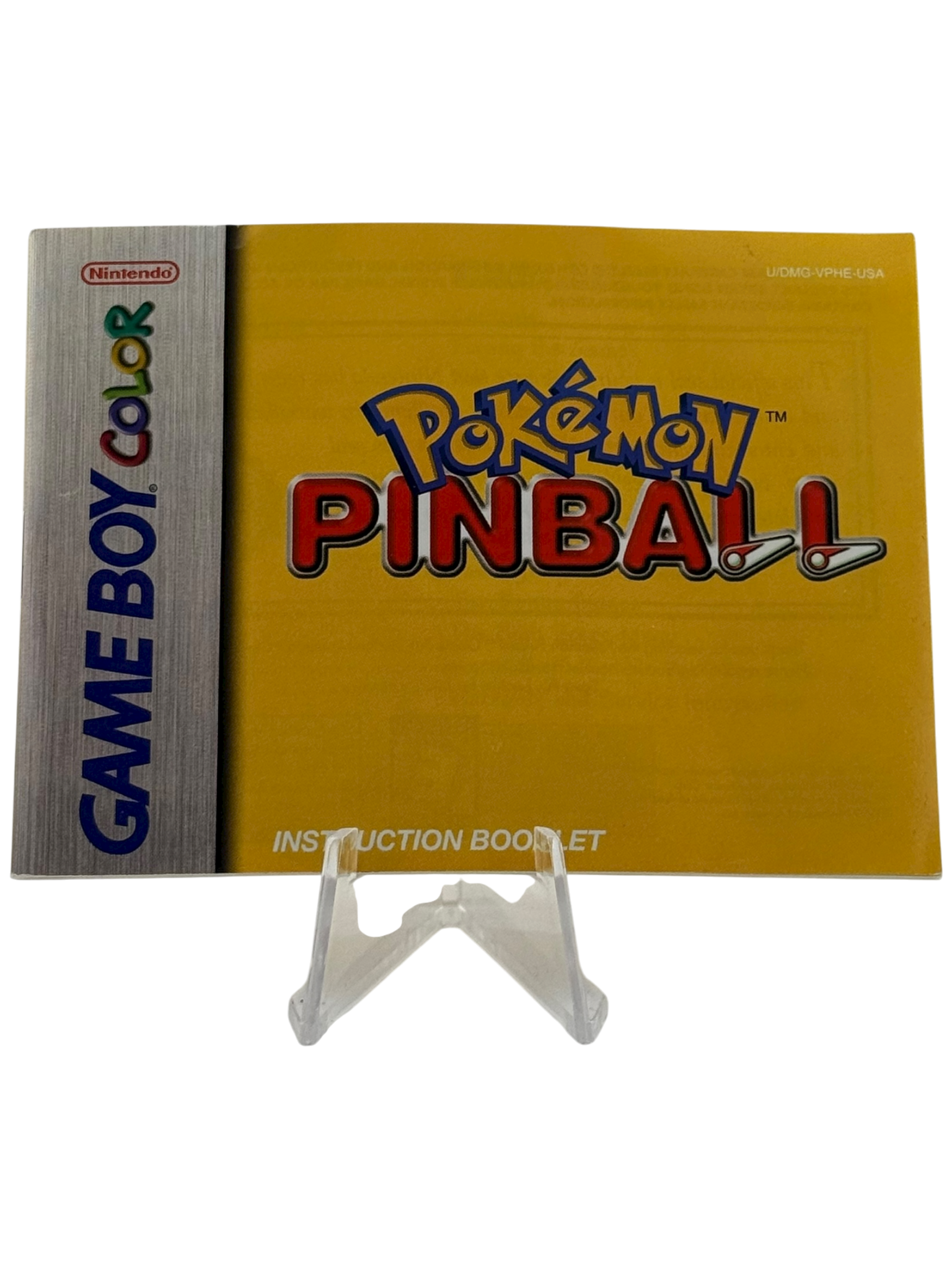 This is a complete in box copy of Pokémon Pinball for the Nintendo Game Boy Color. The listing includes the original game cartridge, manual, and box with cover art. The cartridge has been tested and is fully functional, showing only light wear from prior use. The box and manual are in very good condition with some age-appropriate shelf wear. Please see the photos provided for a detailed view of the item’s condition.