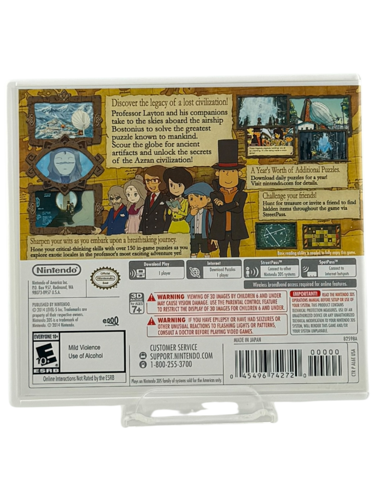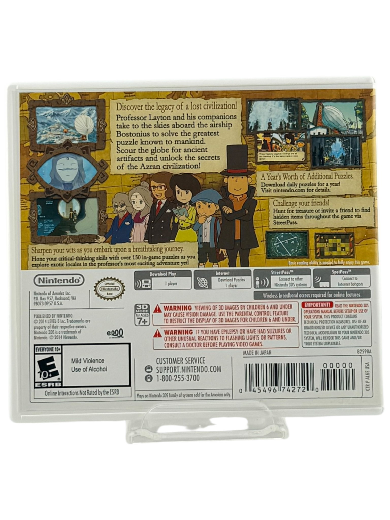 This is a Complete in Box (CIB) copy of Professor Layton and the Azran Legacy for the Nintendo 3DS. Includes: