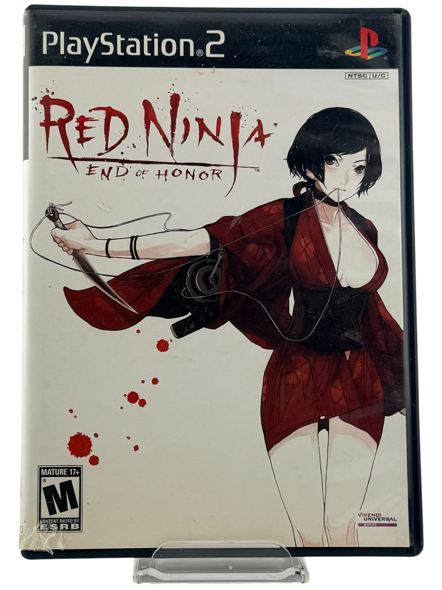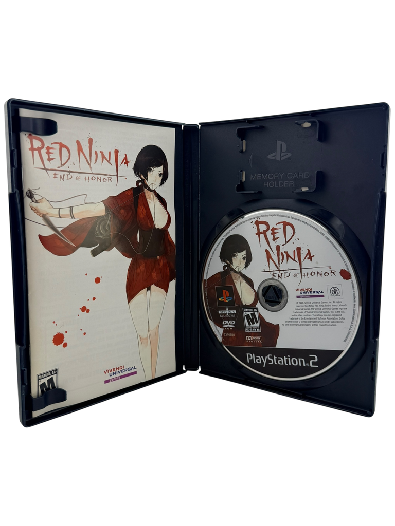 This listing includes the original Red Ninja: End of Honor game disc, manual, and PlayStation 2 case with authentic cover artwork. The disc has been tested and confirmed to be fully functional, showing only minimal signs of prior use. The manual and case are in excellent overall condition, with light shelf wear consistent with age. All components are original and verified for authenticity — a complete and collectible copy of this cult-favorite title.