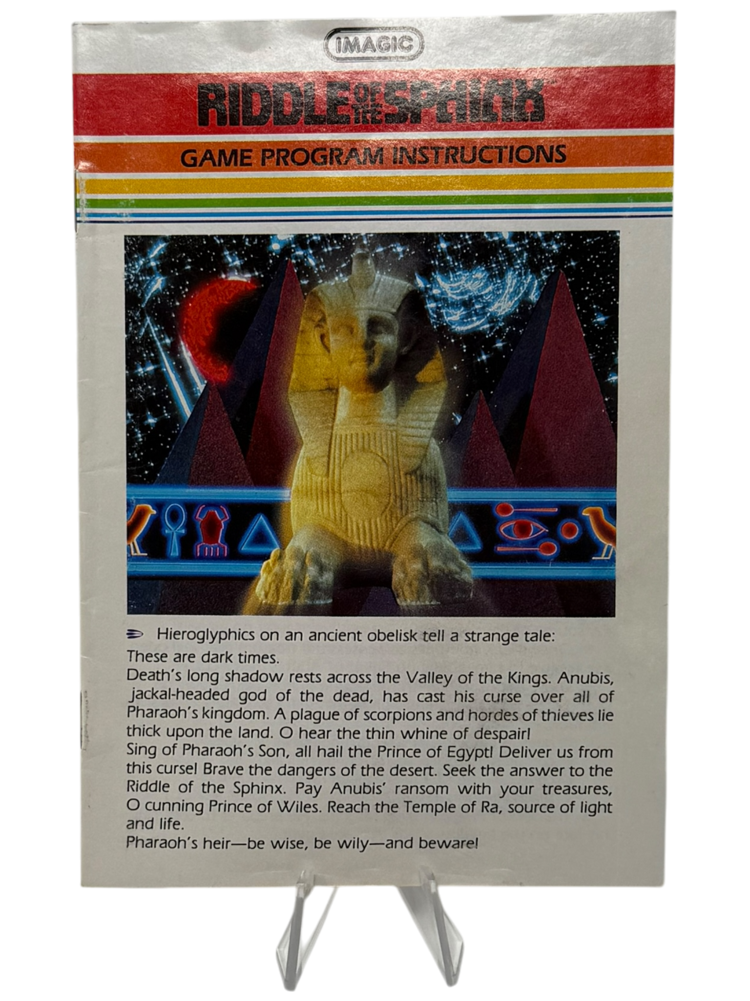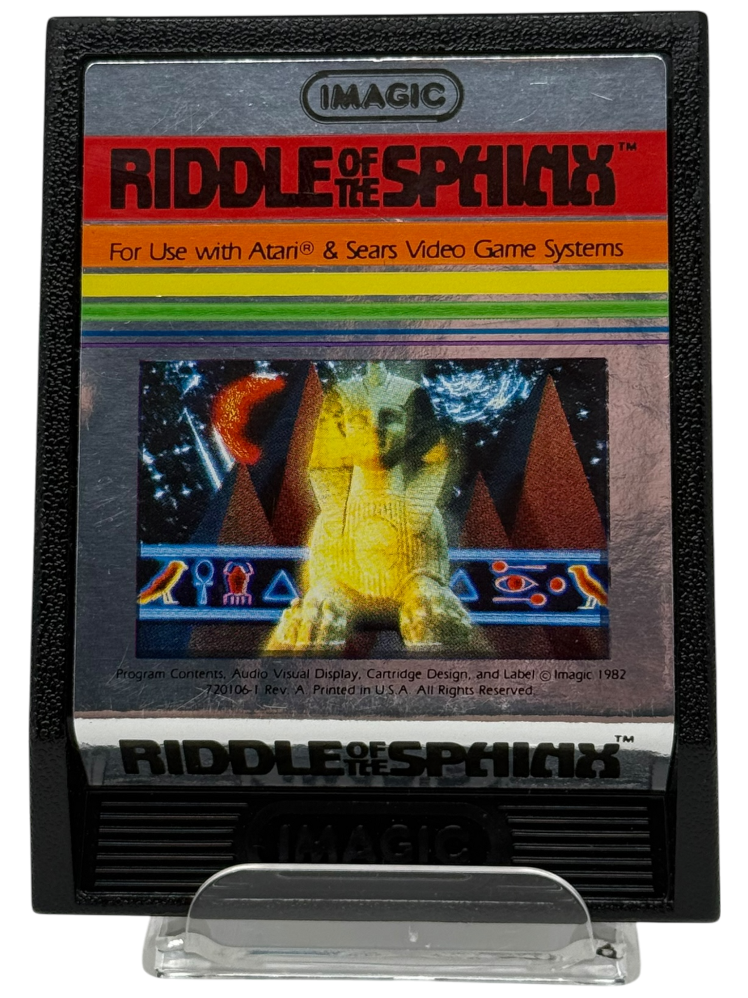 Embark on a mythic quest through ancient Egypt in Riddle of the Sphinx! As the Prince of Egypt, you’ll travel across deserts, cross rivers, and explore temples to solve the riddle and restore peace to the land. Combining exploration, puzzle-solving, and light combat, this ambitious title stands out as one of the more complex and rewarding adventures on the Atari 2600. A true gem for collectors of deep-cut classics.