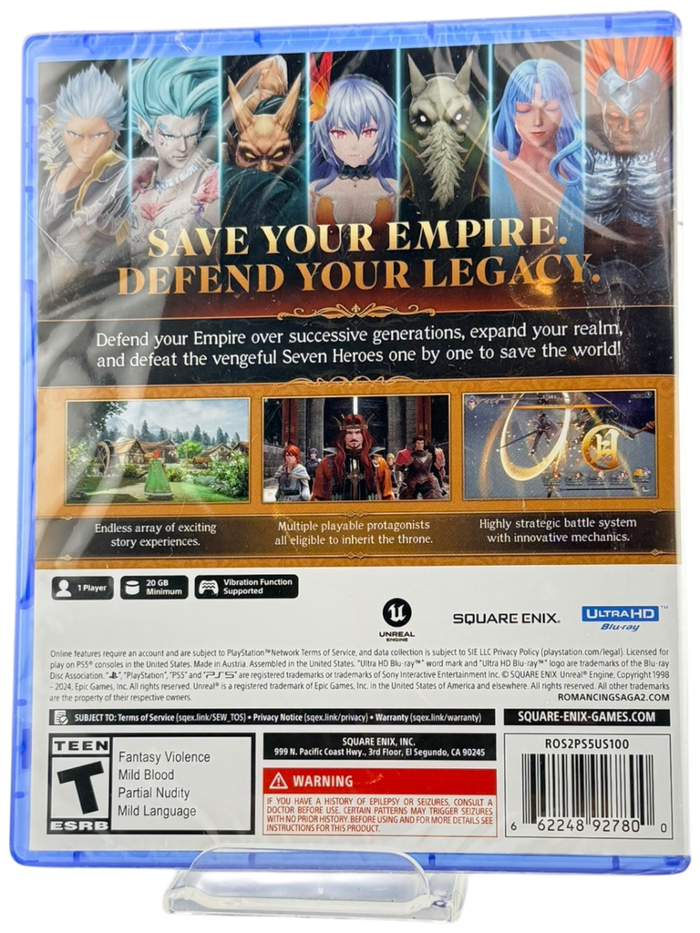 With its distinctive mechanics, rich lore, and updated presentation for modern platforms, Romancing SaGa 2: Revenge of the Seven is a must-have for fans of classic Square Enix RPGs and deep, systems-driven adventures. This sealed PS5 copy is a strong addition to any role-playing game collection.