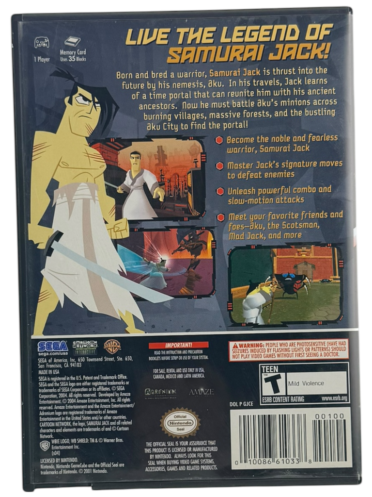 This is an authentic, pre-owned Complete in Box (CIB) copy of Samurai Jack: The Shadow of Aku for the Nintendo GameCube. The game has been inspected for condition and completeness, and it includes the original game disc, original manual, and original GameCube case.
