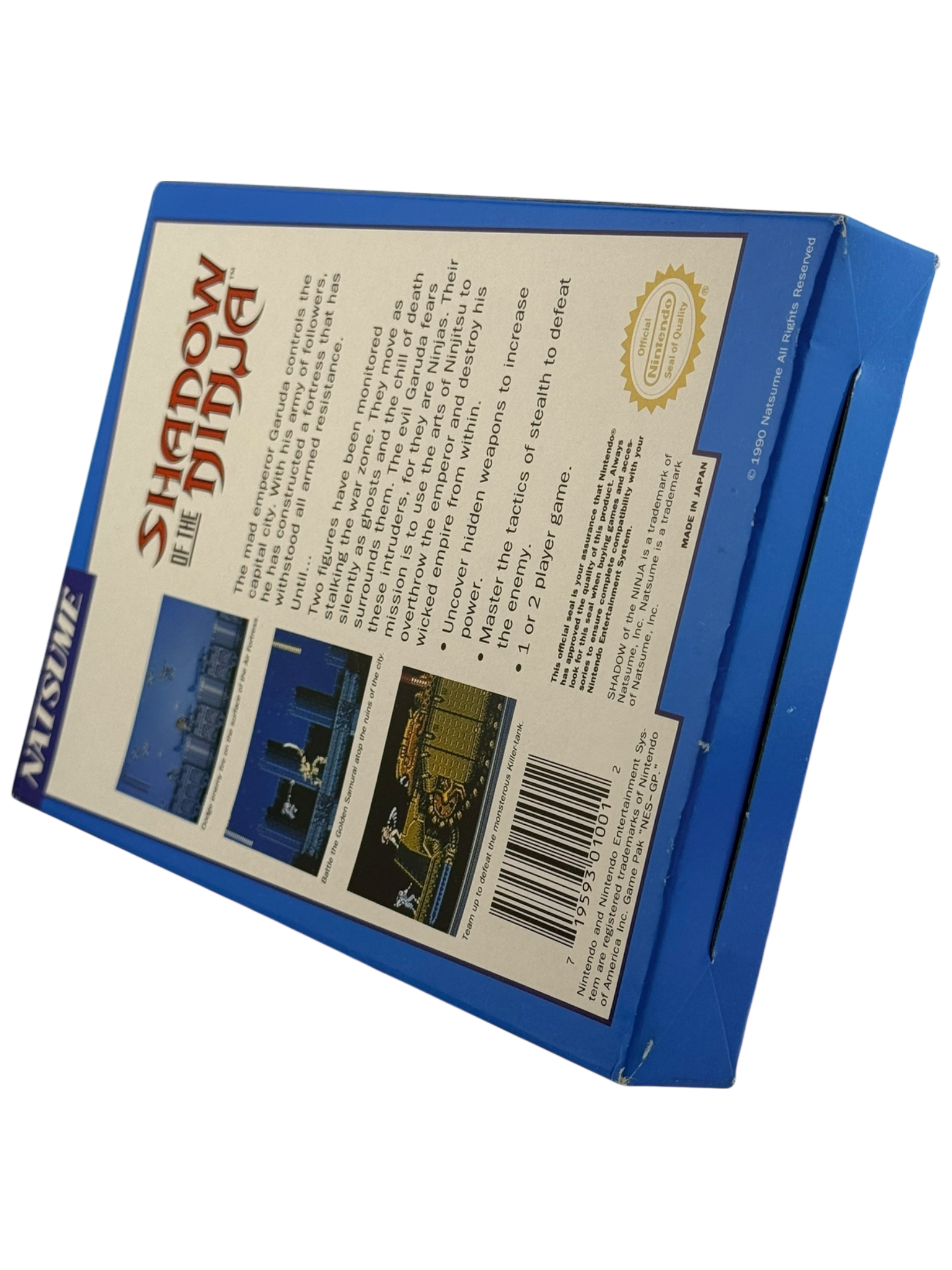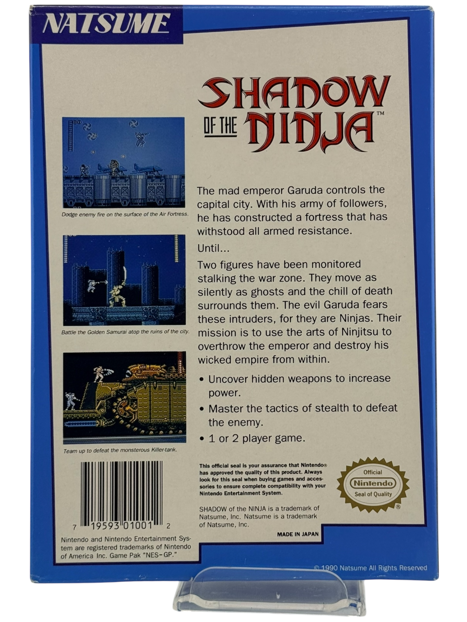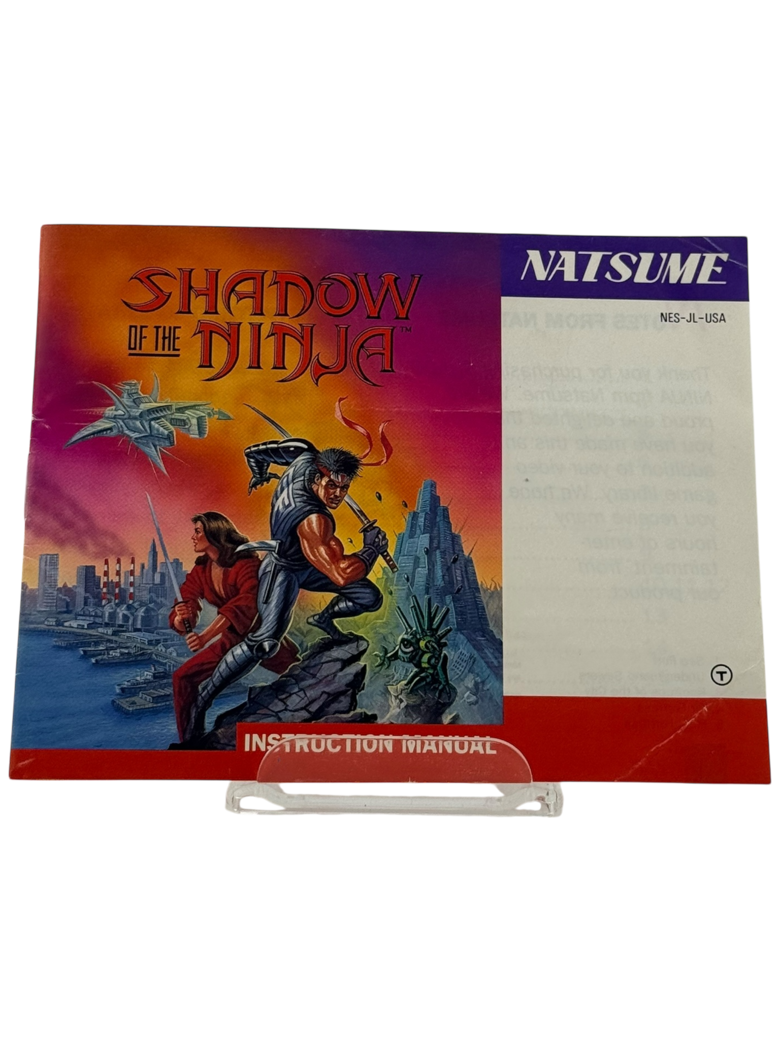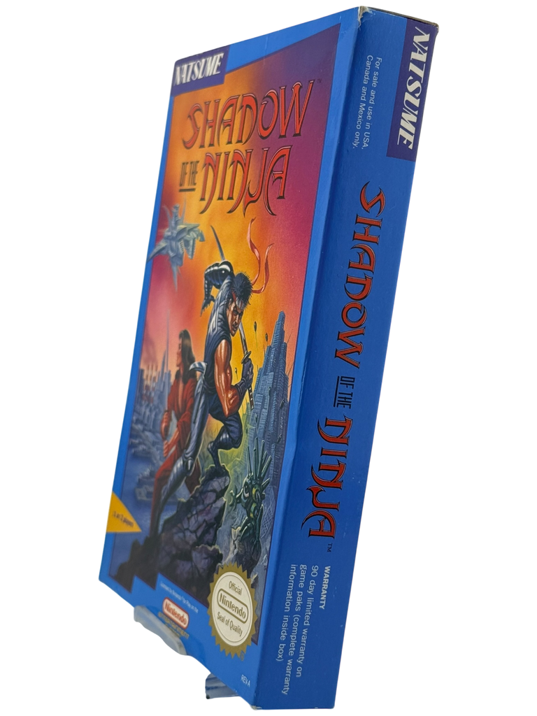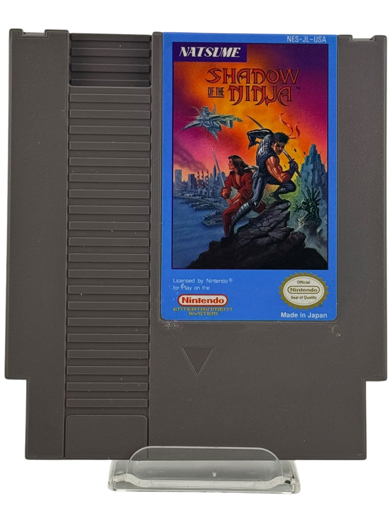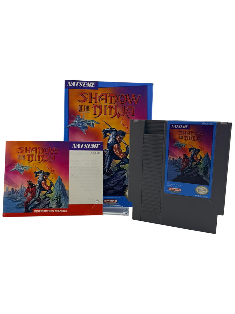 This listing includes the original Shadow of the Ninja game cartridge, instruction manual, and authentic Nintendo Entertainment System box with original artwork. The cartridge label is clean and firmly attached, with contacts tested and verified for reliable play. The manual and box display only light age-related wear, preserving excellent visual quality for collectors. All components are original, complete, and verified for authenticity — a standout addition to any NES library.